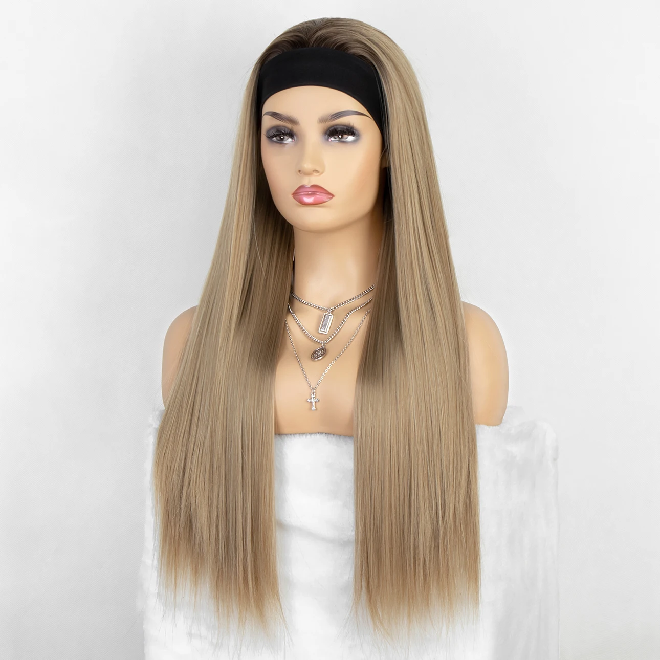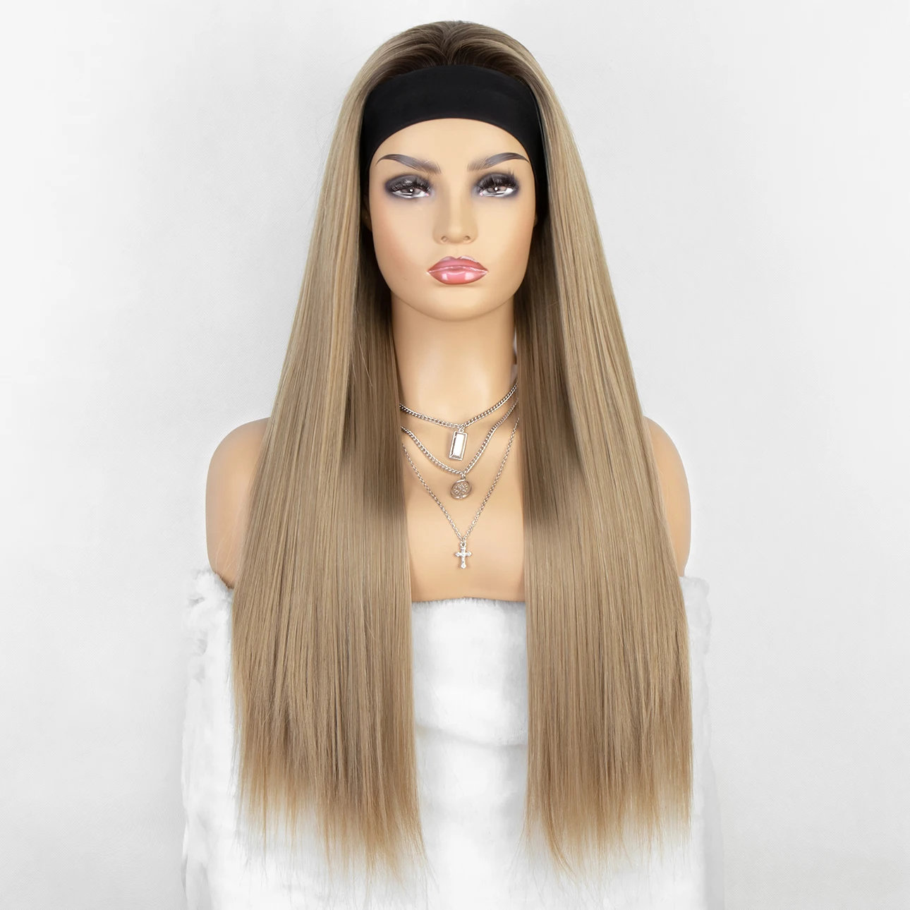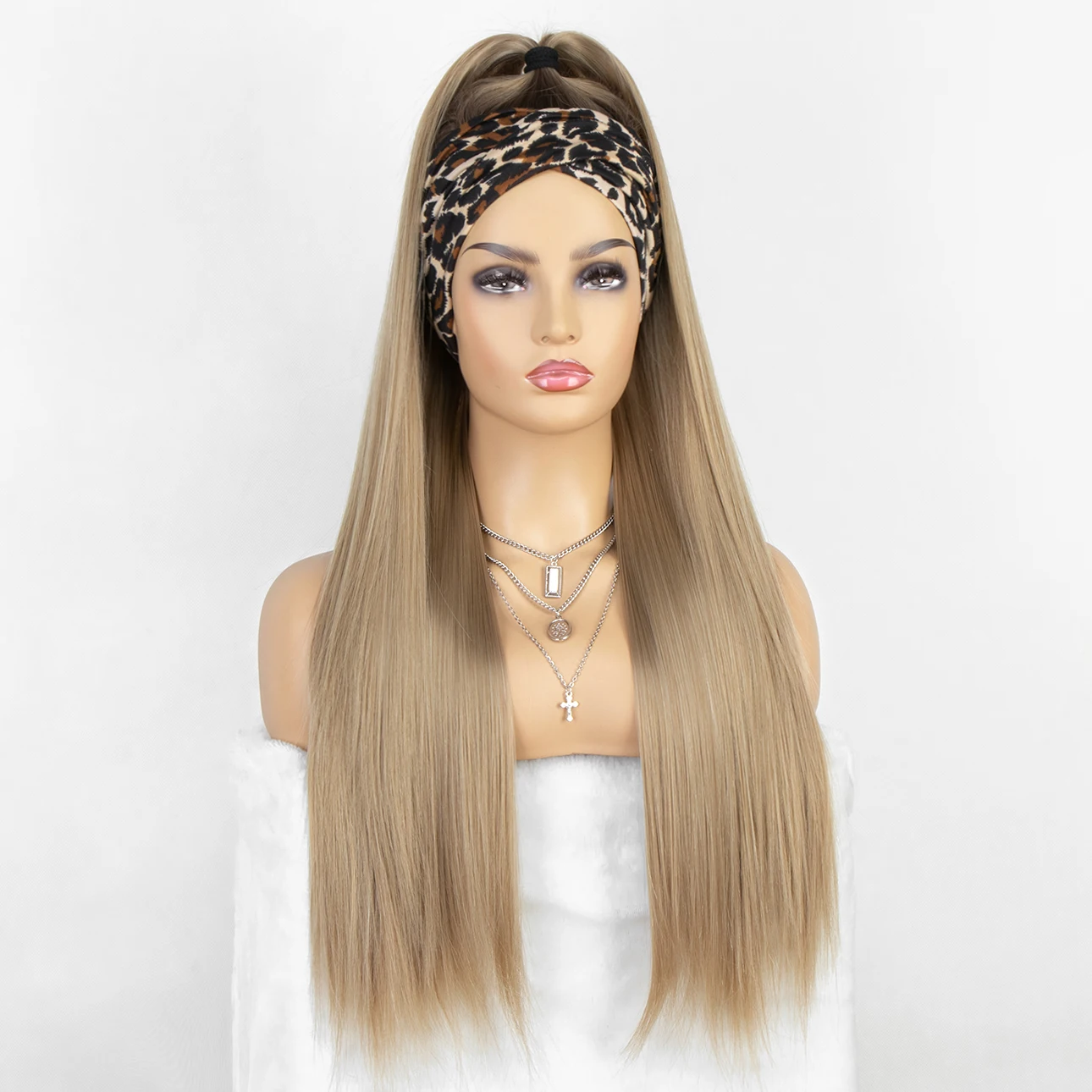 Тип волос:Бесклеевой шарф длинный прямой парик с головной повязкой