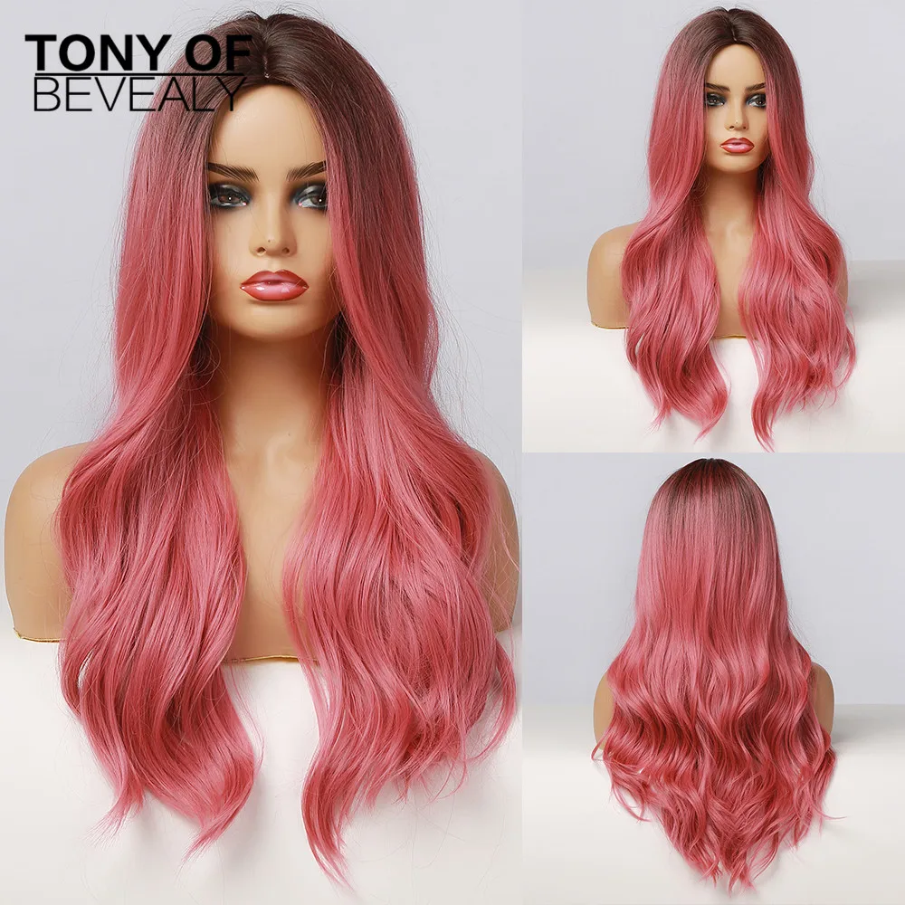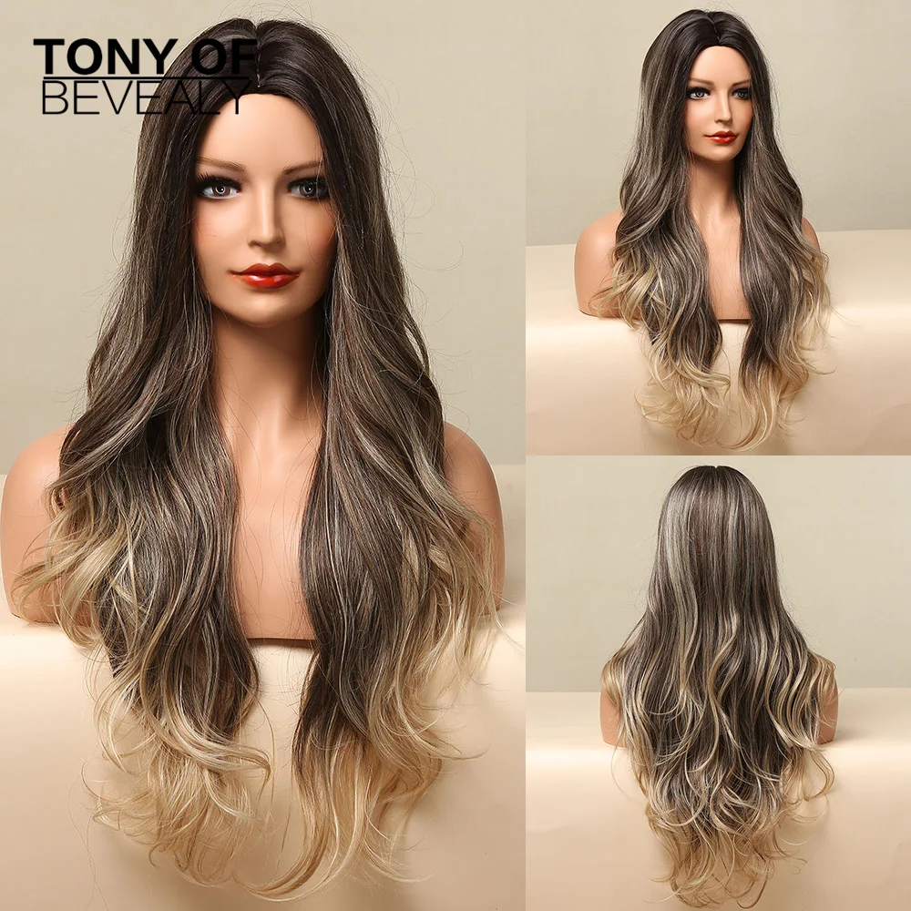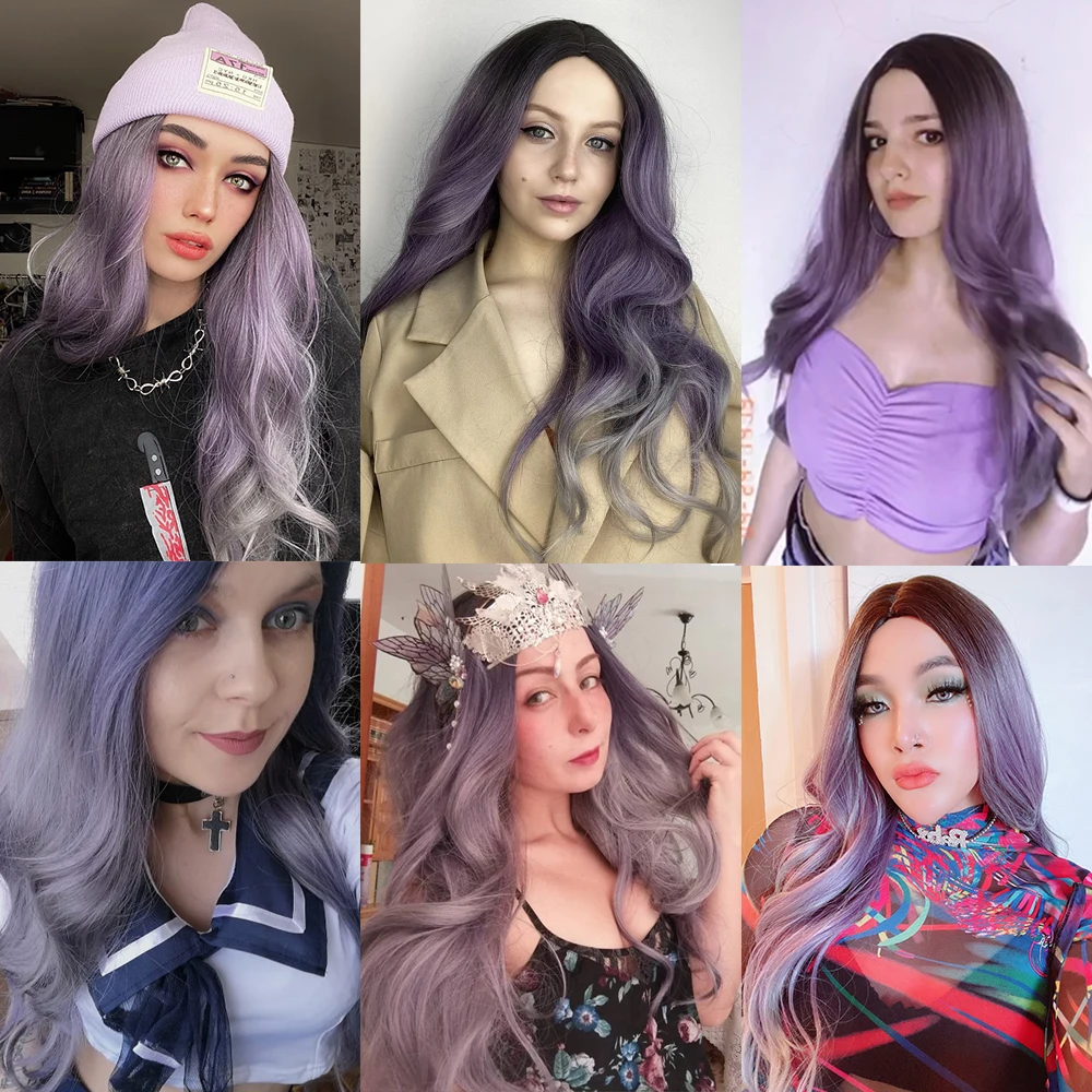 Длинные волнистые фиолетовые и серые волосы Омбре средняя часть термостойкие натуральные синтетические парики для женщин Косплей вечерние модные парики