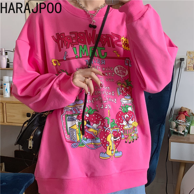 Женская рубашка HARAJPOO, весна-осень, корейский стиль, уличная одежда в стиле Харадзюку, Y2k, розовый топ с вышивкой маленькой любви, свободные футболки с длинными рукавами