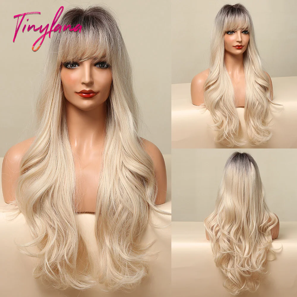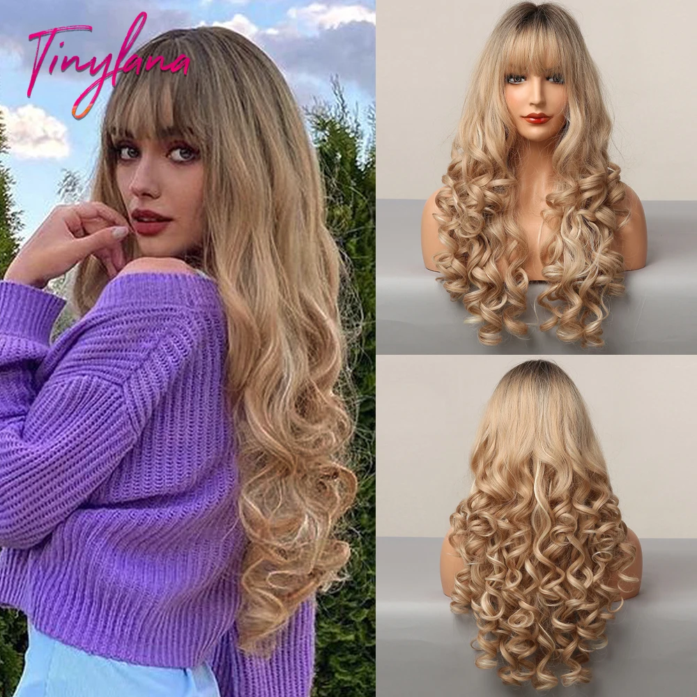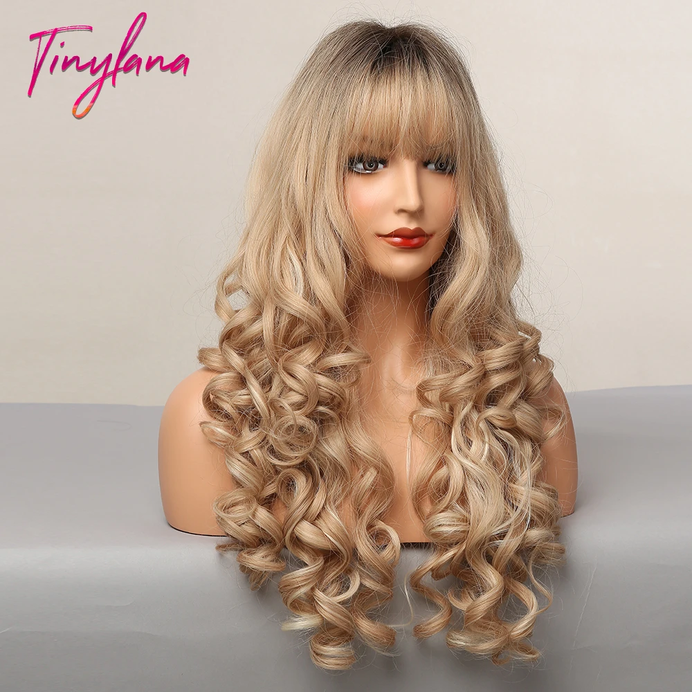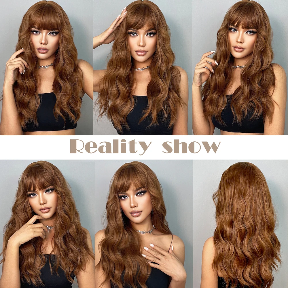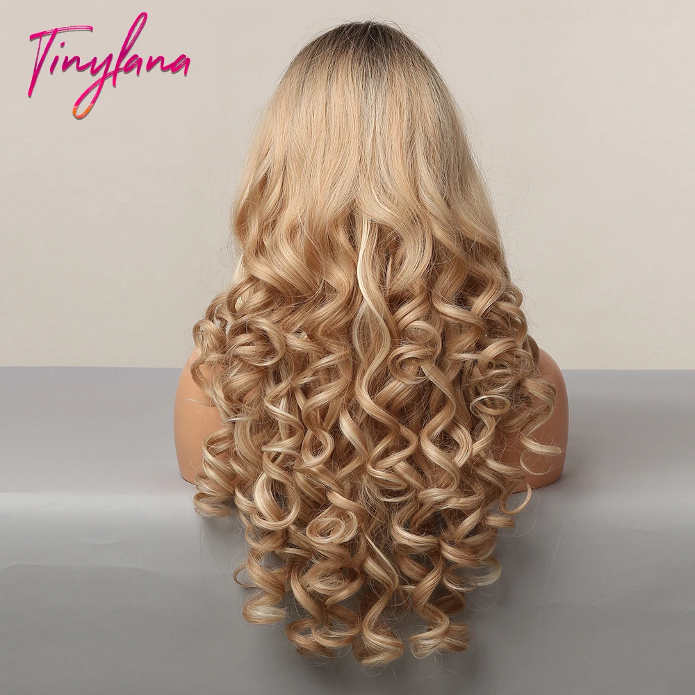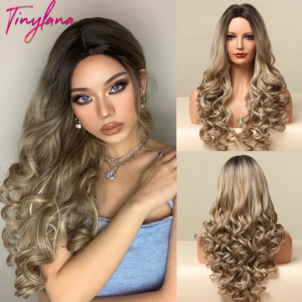 [Изысканный дизайн] длинный темно-Волнистый коричневый парик блонд легко смешивать с волосами после нескольких процессов. Он натуральный и прочный. Верх парика Темный