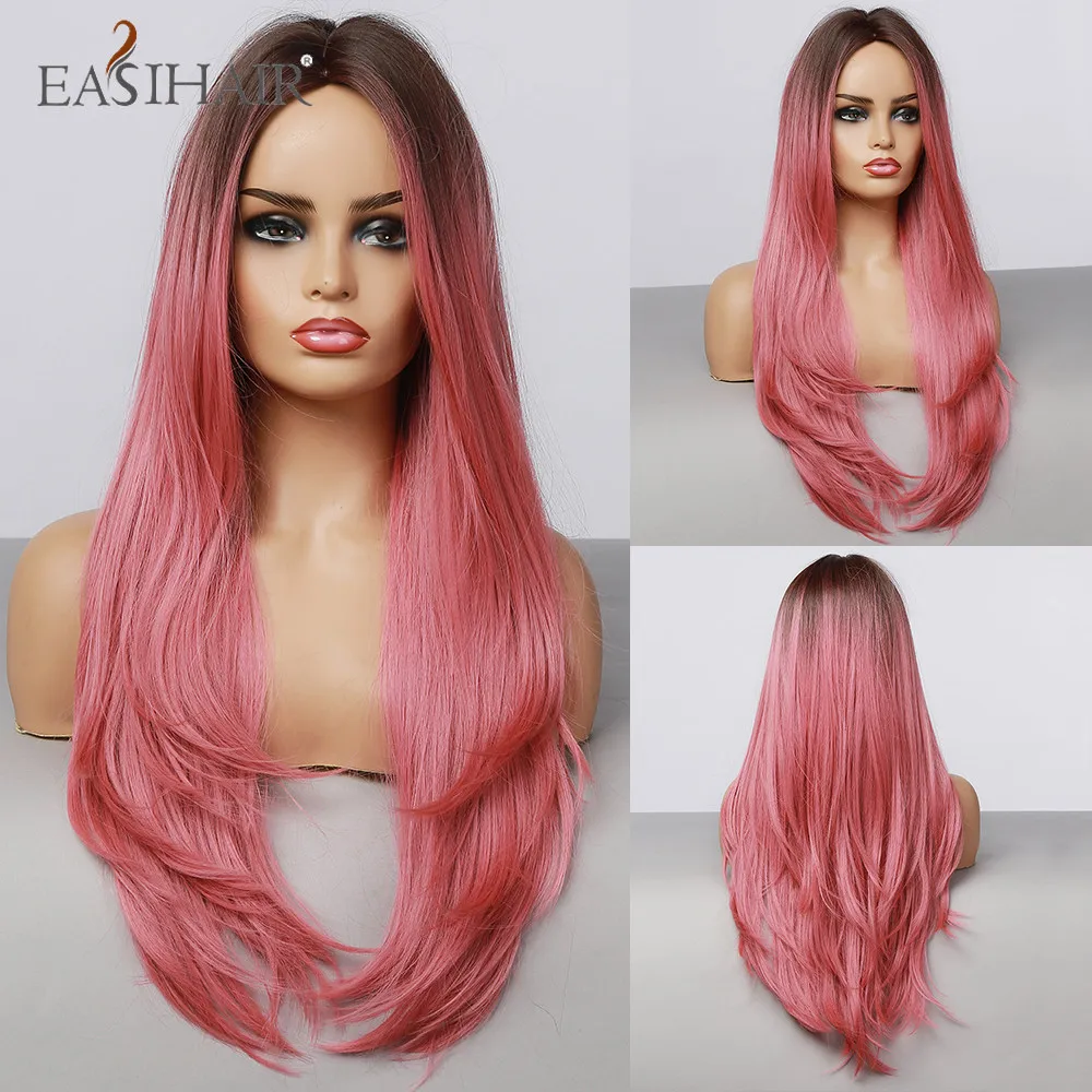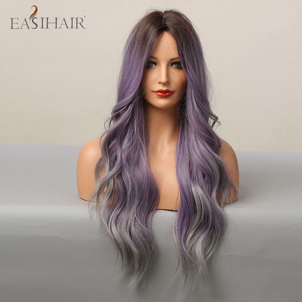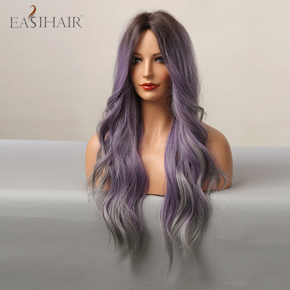 EASIHAIR Ombre коричневый смешанный фиолетовый блонд Длинные Синтетические волнистые парики для женщин Термостойкие Красочные волокна косплей Лолита Парики