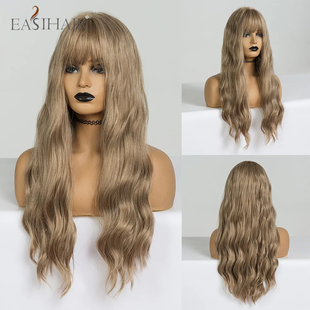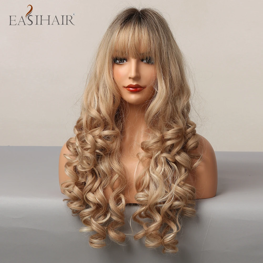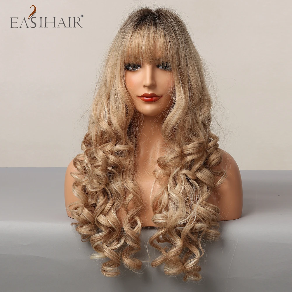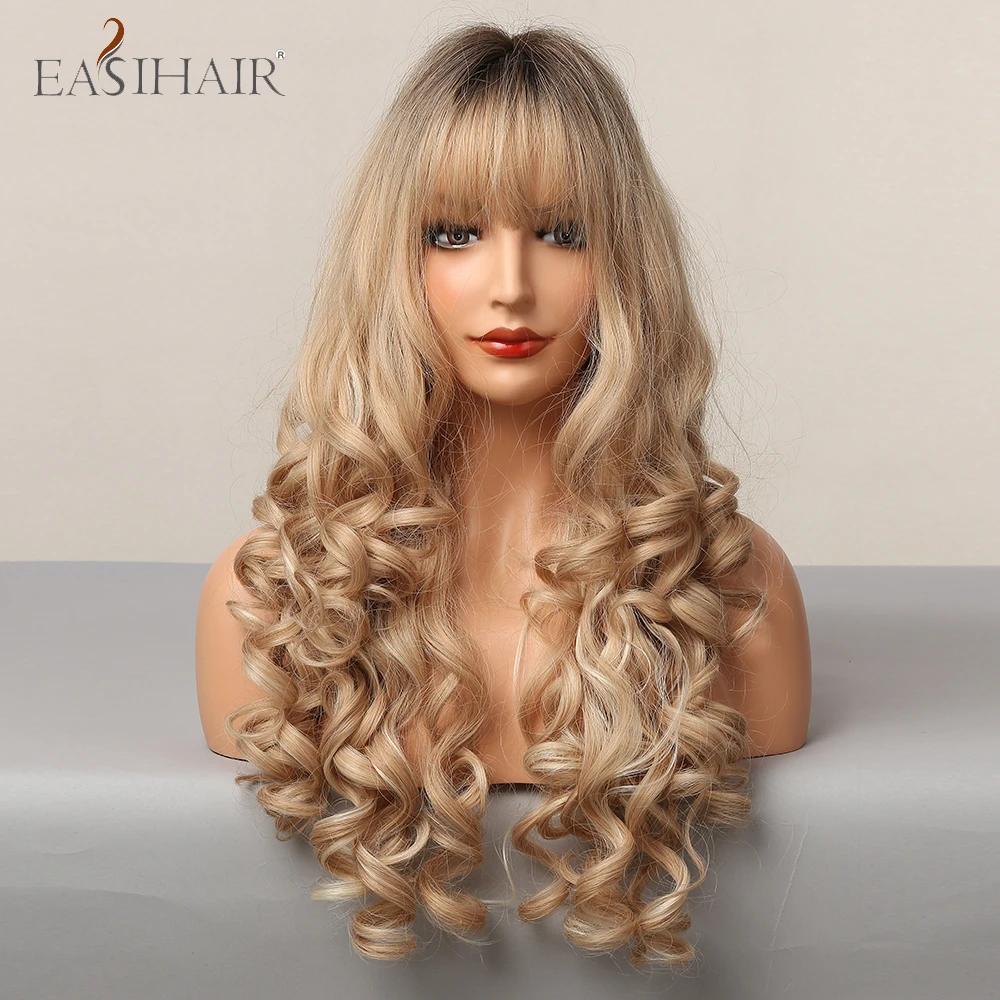 EASIHAIR, Омбре, коричневый, шампань, блонд, выделка, Длинные свободные волнистые синтетические волосы, парики с челкой, термостойкие поддельные волосы для женщин