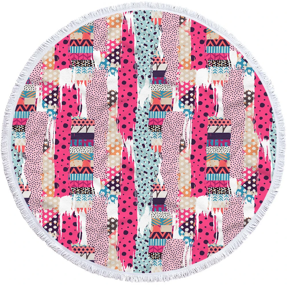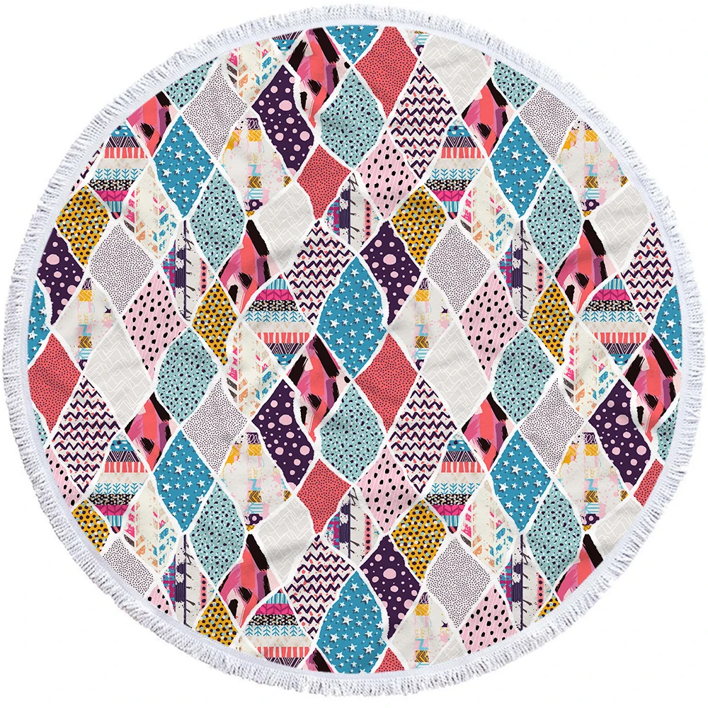Летнее туристическое круглое пляжное полотенце с кисточками, геометрическое изображение, пляжное полотенце из микрофибры, мягкое комфортное банное полотенце для взрослых