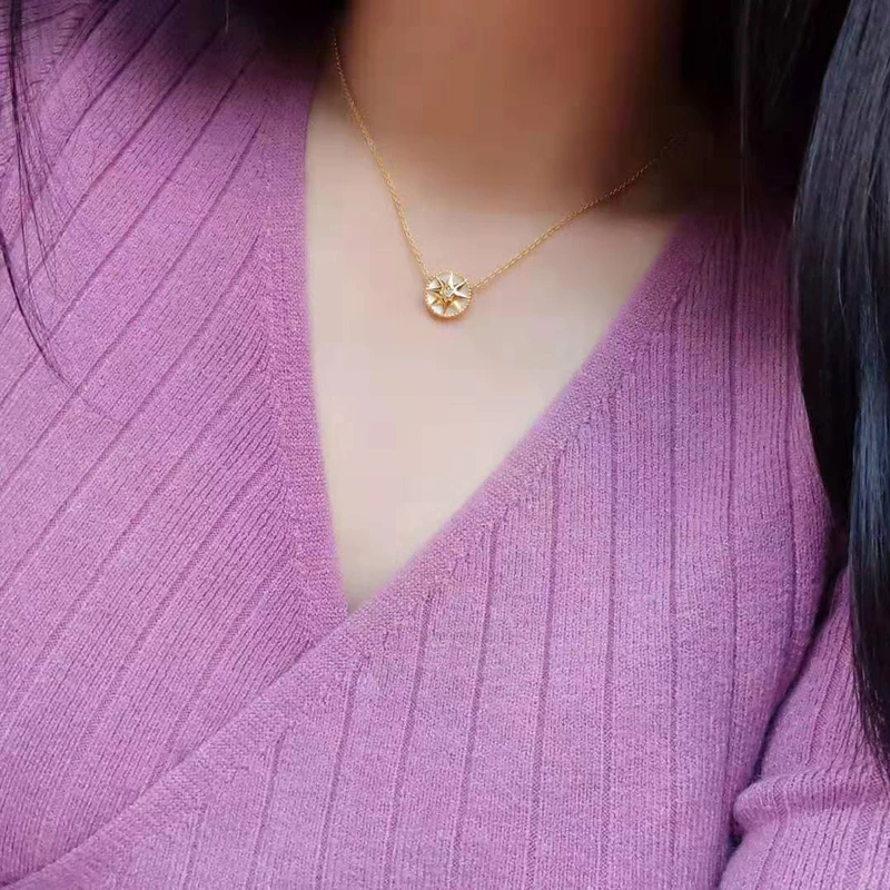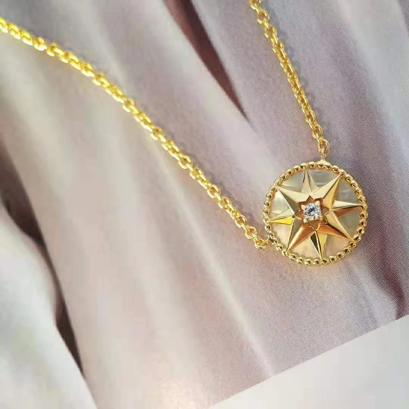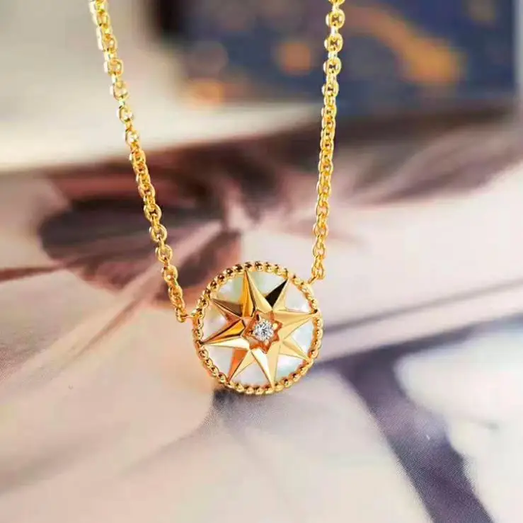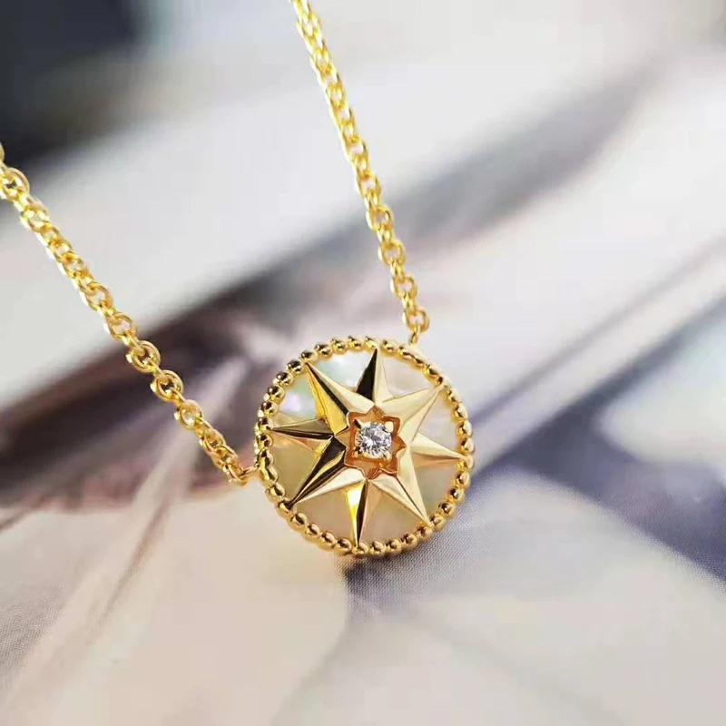 Knobspin 100% Серебро 925 пробы восемь компас со звездой белая фритиллярия ожерелье Ювелирное Украшение для женщины девушки подарок