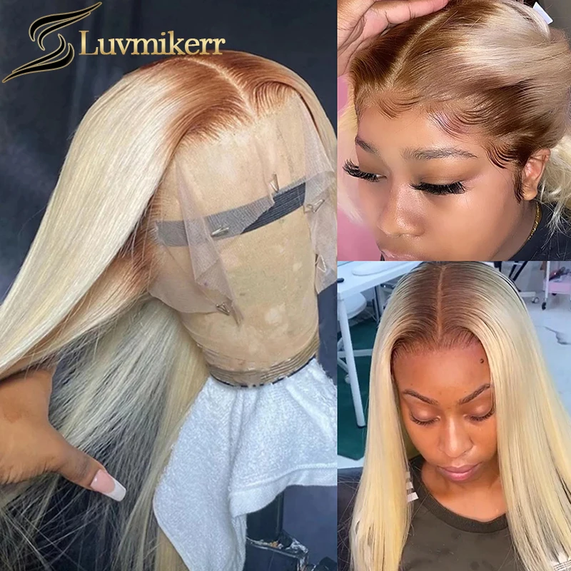 Парик из натуральных волос с коричневым Омбре, блонд, прямые, 13x5, HD, прозрачный, с кружевом, полностью выщипанные, отбеливатель, узлы, 613, парик с фронтальным кружевом для женщин, 30