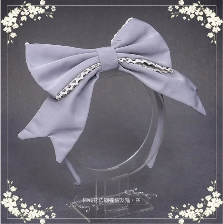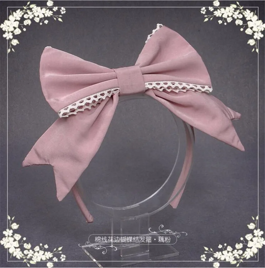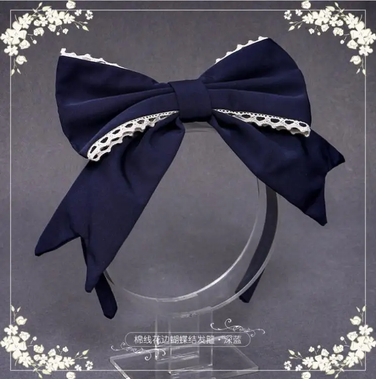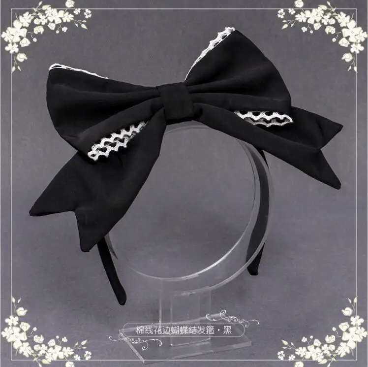 Японский большой бант KC Лолита повязка аксессуары для волос из кружева бандана на каждый день горничной косплей реквизит D839