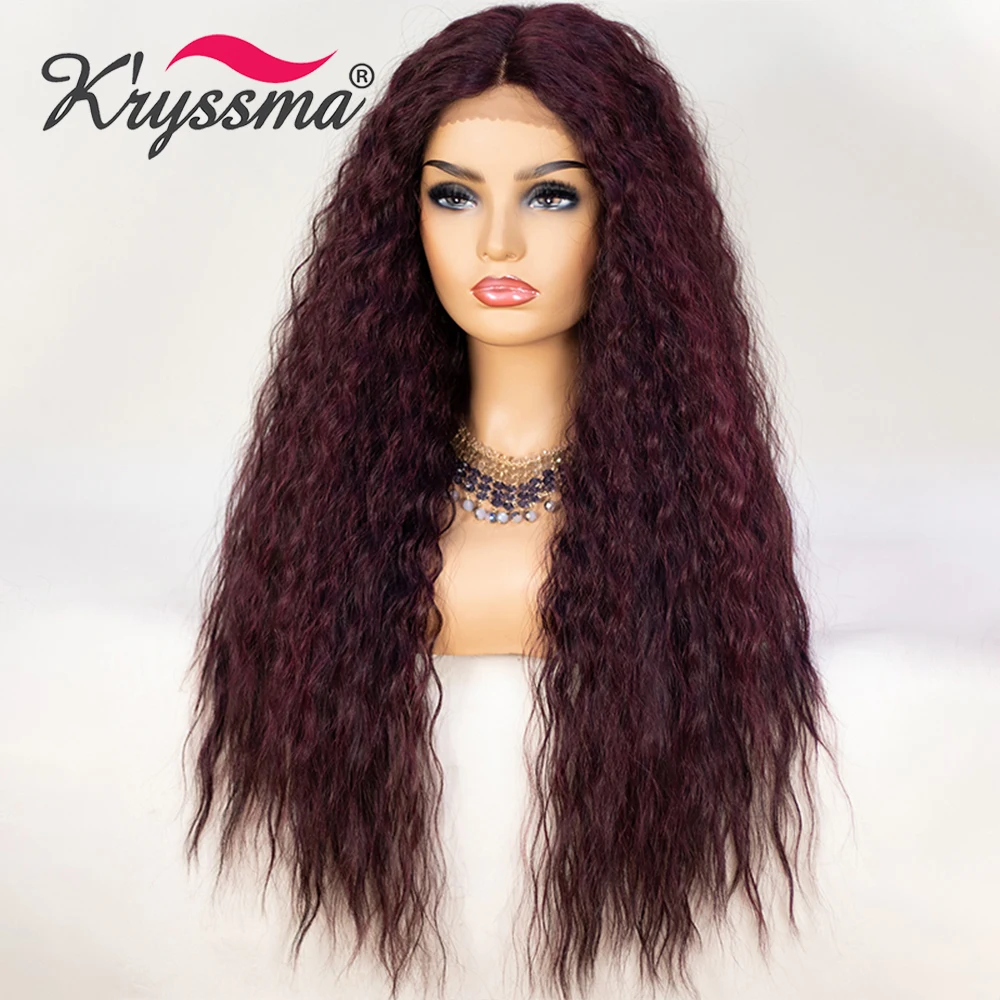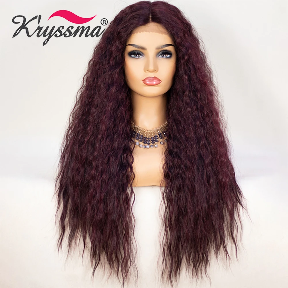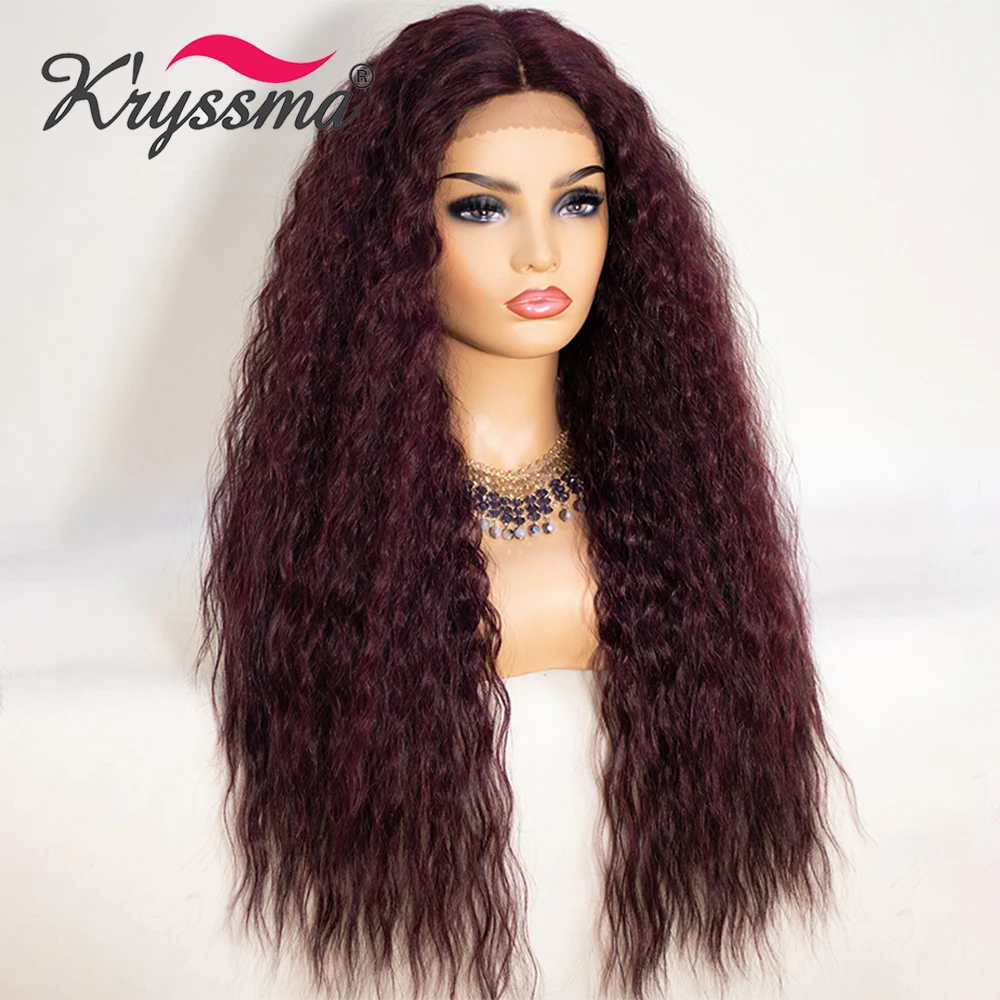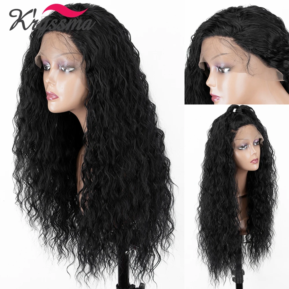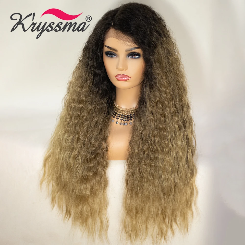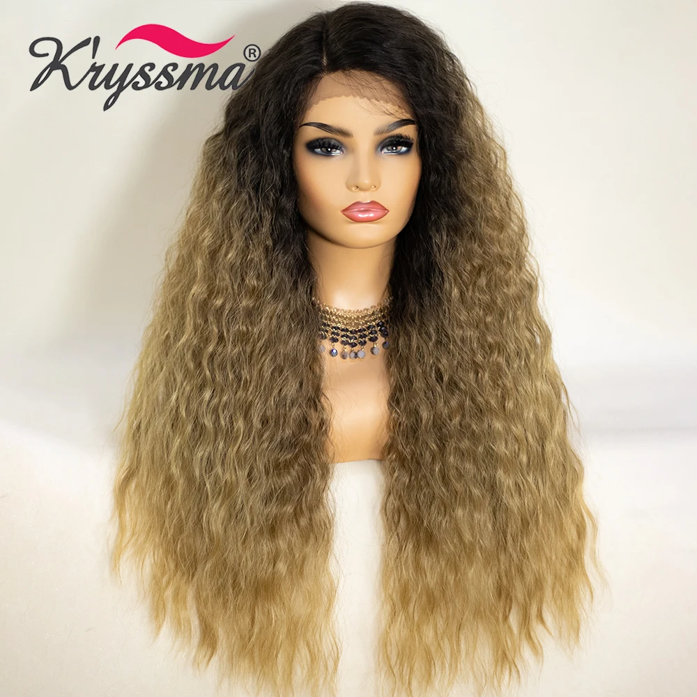 Kryssma кудрявые волосы длинные черные синтетические кружевные передние парики для женщин блонд кудрявые Омбре кружевные парики с волосами младенца Glueless парики
