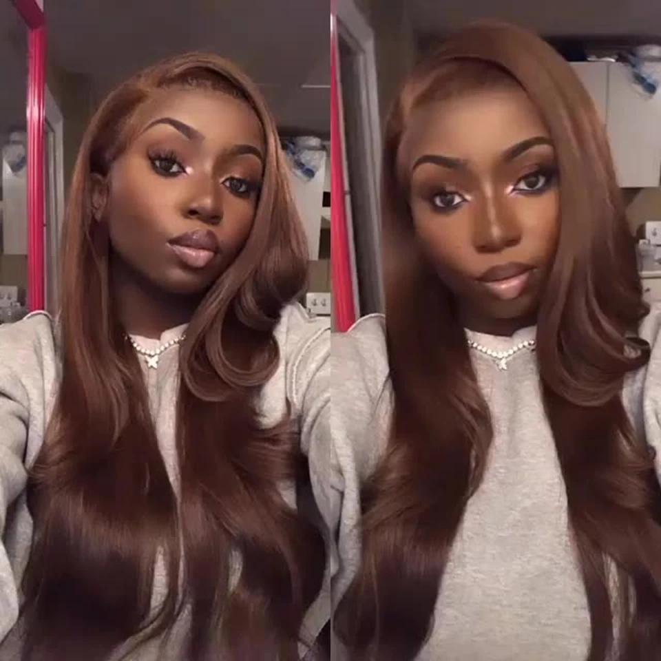 Цвет коричневый 13x 4 человеческие волосы на кружеве парики для женщин 180% prepucked бразильский Remy светильник коричневый прямые кружевные передние парики