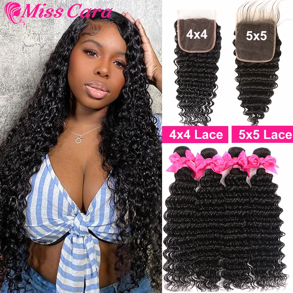 Miss Cara пупряди глубокой волны с закрытием 5x5 кружевное закрытие пряди 4 пряди с 4x4 кружевное закрытие бразильские волосы глубокая волна