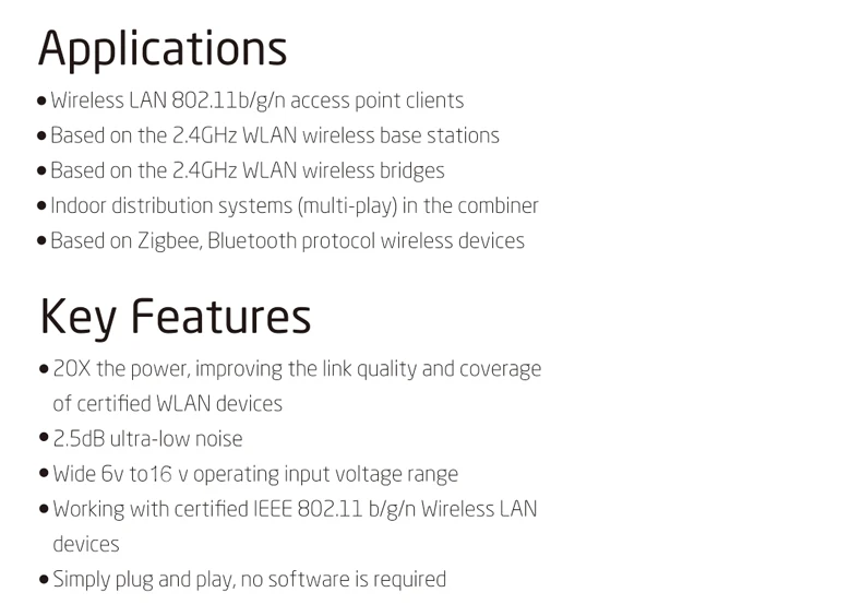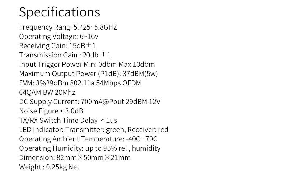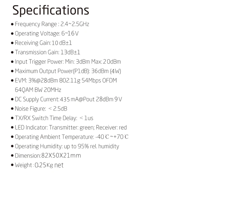Выходная мощность Maxmium (P1dB):37dBM (5 Вт)