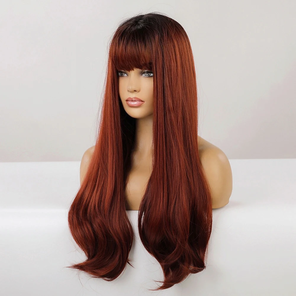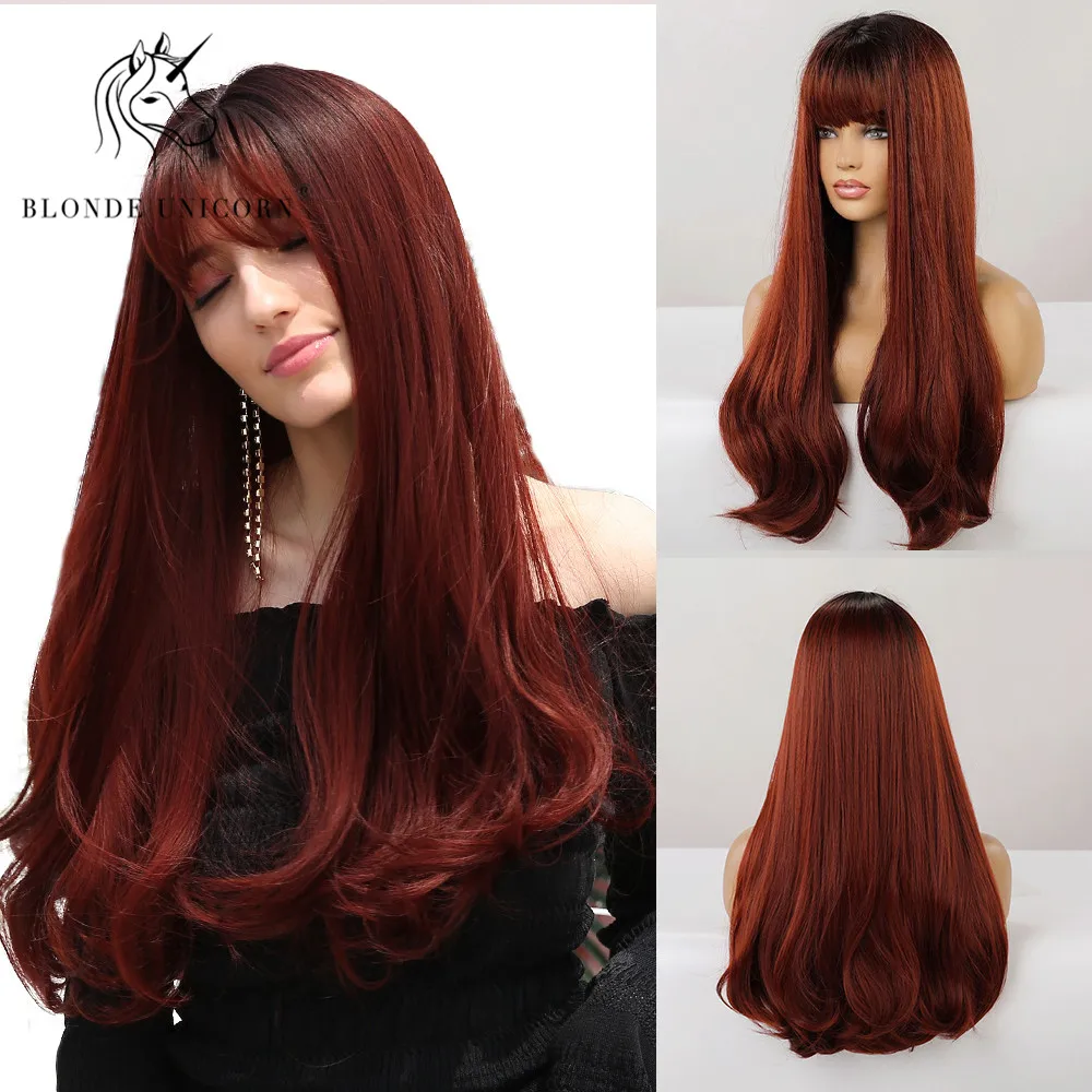 Блонд Единорог натуральные длинные прямые синтетические волосы парики темный корень Омбре винно-красный для белых и черных женщин Термостойкое волокно