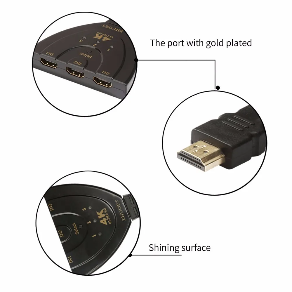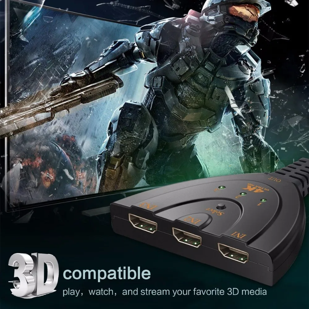 Этот коммутатор с 3 входами на 1 выходом, совместимый с HDMI, имеет функцию переключения нажатием клавиш и имеет интеллектуальную функцию. Коммутатор с 3 входами на 1 выход, совместимый с HDMI, передает видео высокой четкости 4k * 2k и цифровое аудио с любого из 3 источников на блок отображения. Три входа позволяют одновременно подключать источники видео высокой четкости, такие как HD-плеер, Blu-Ray плеер, телеприставка, P & S3, Xbox360 и т. Д. Выход передает аудио/видео сигналы высокой четкости на дисплей высокой четкости, такой как HDTV.