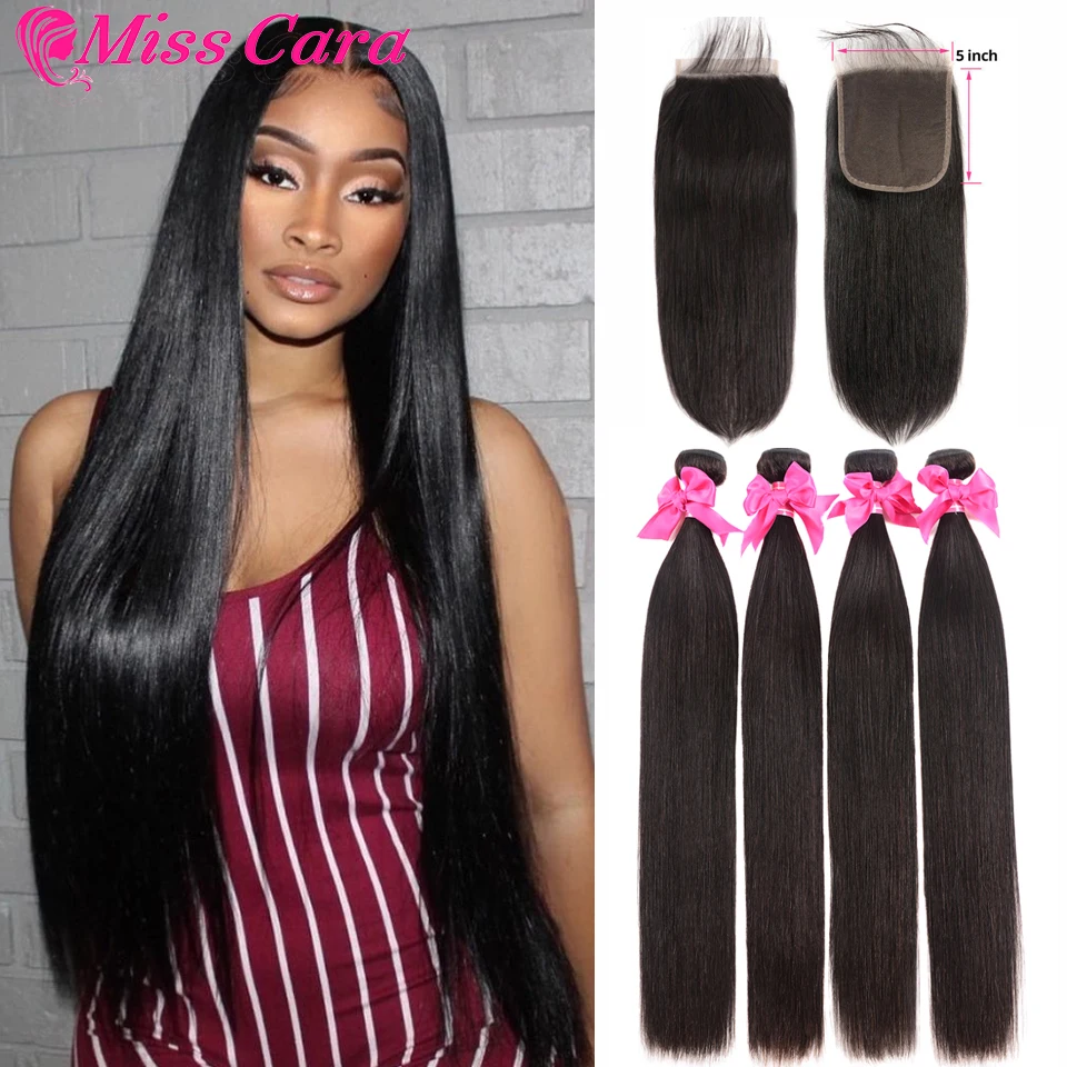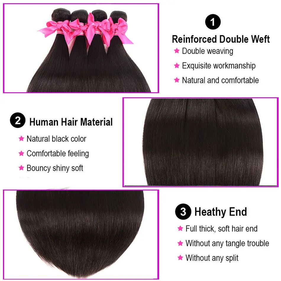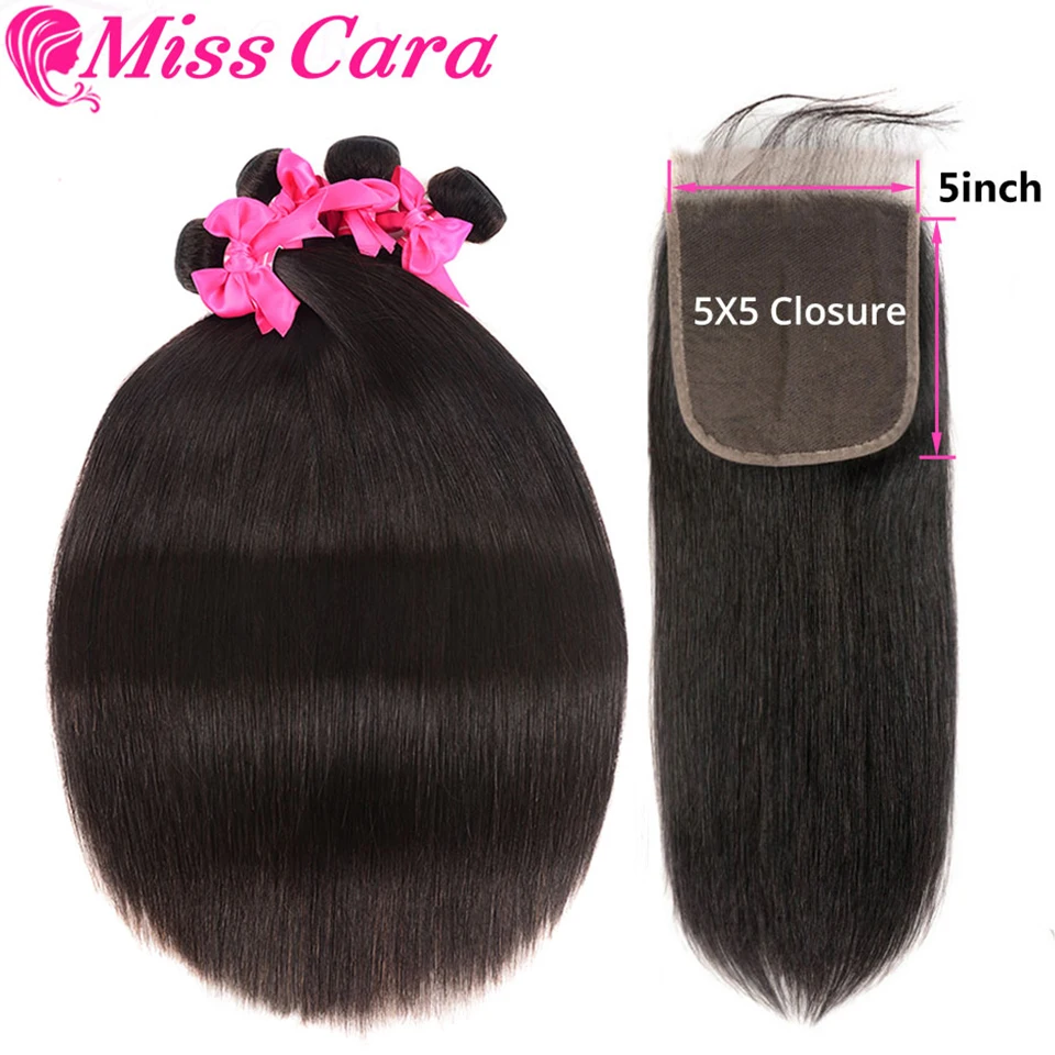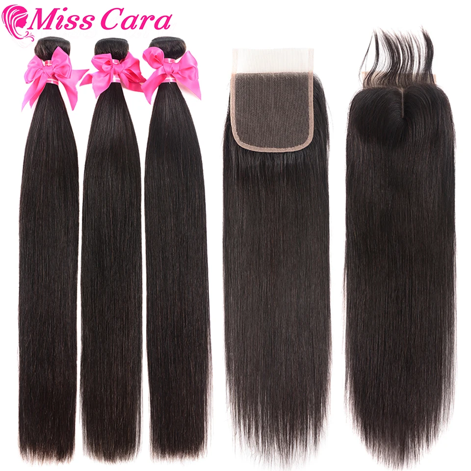 3. Текстура волос: Misscara Malaysia прямые волосы 3/4 пряди с закрытием 100% Remy накладные человеческие волосы с 4*4 шнуровкой двойной уток