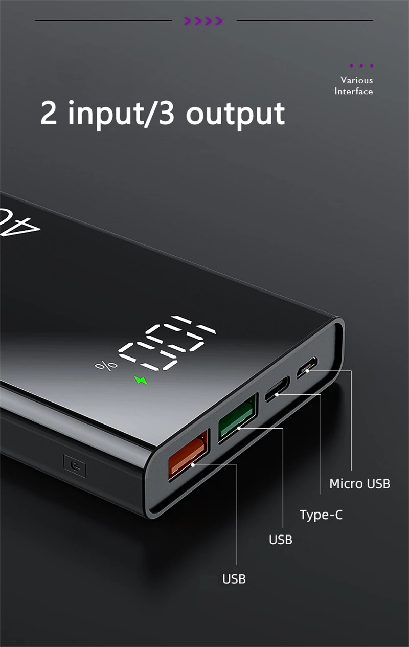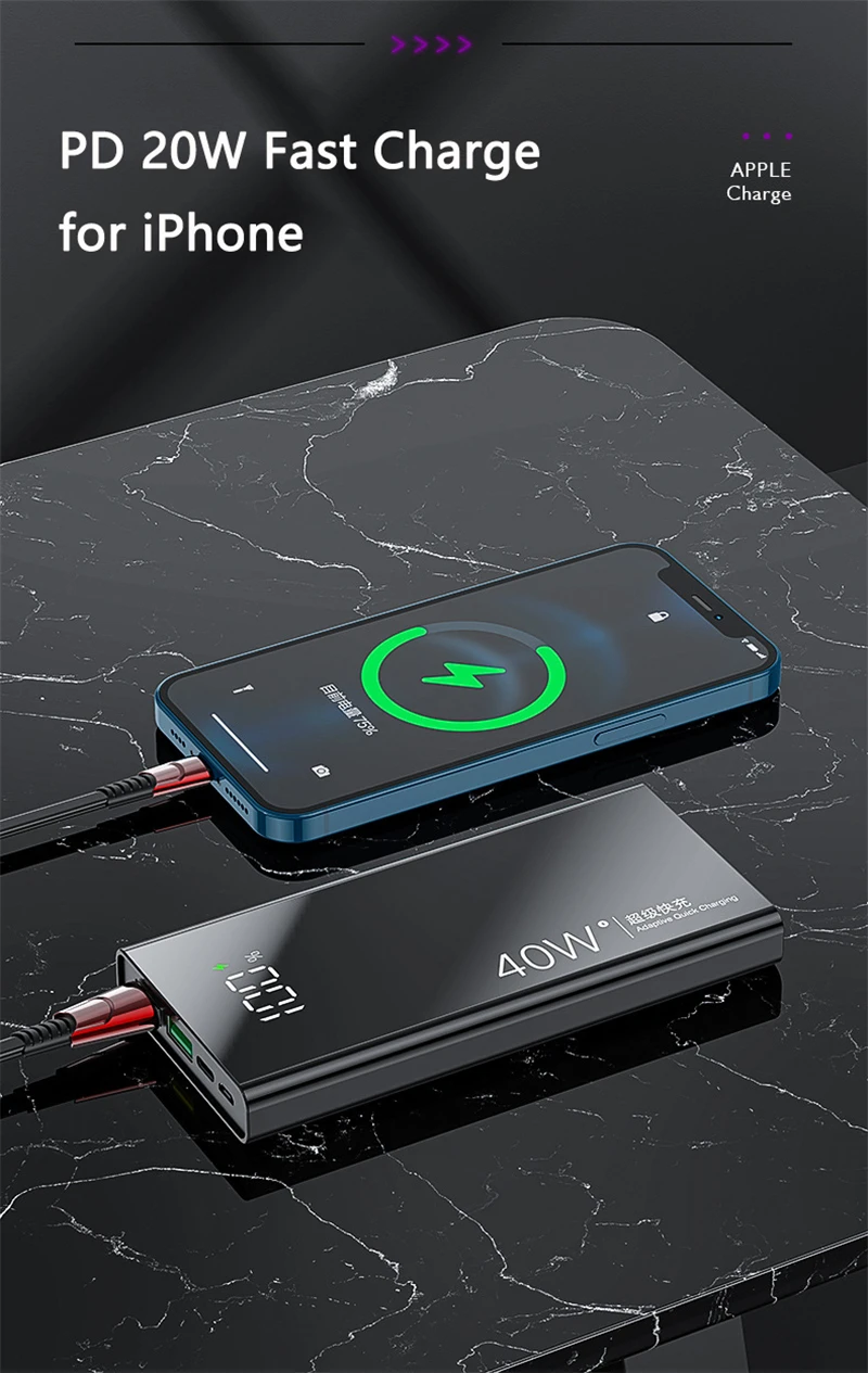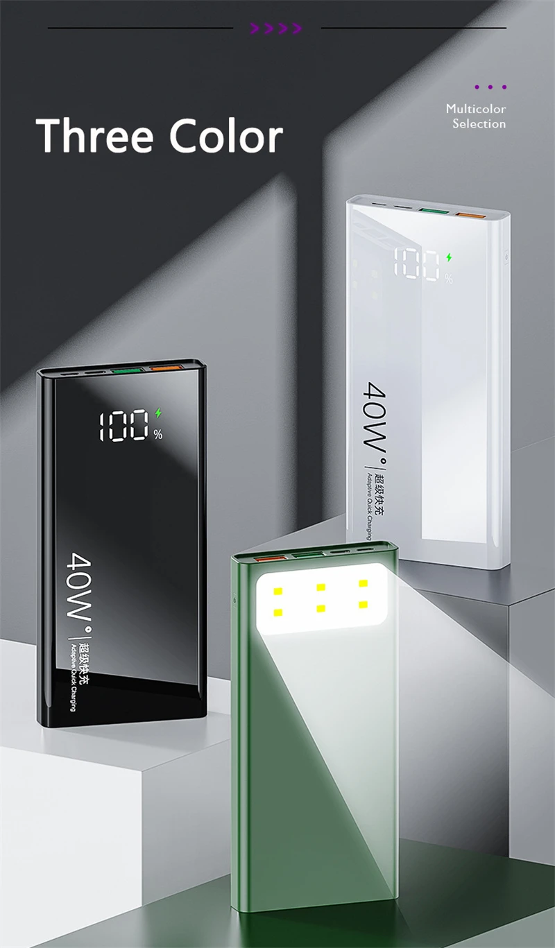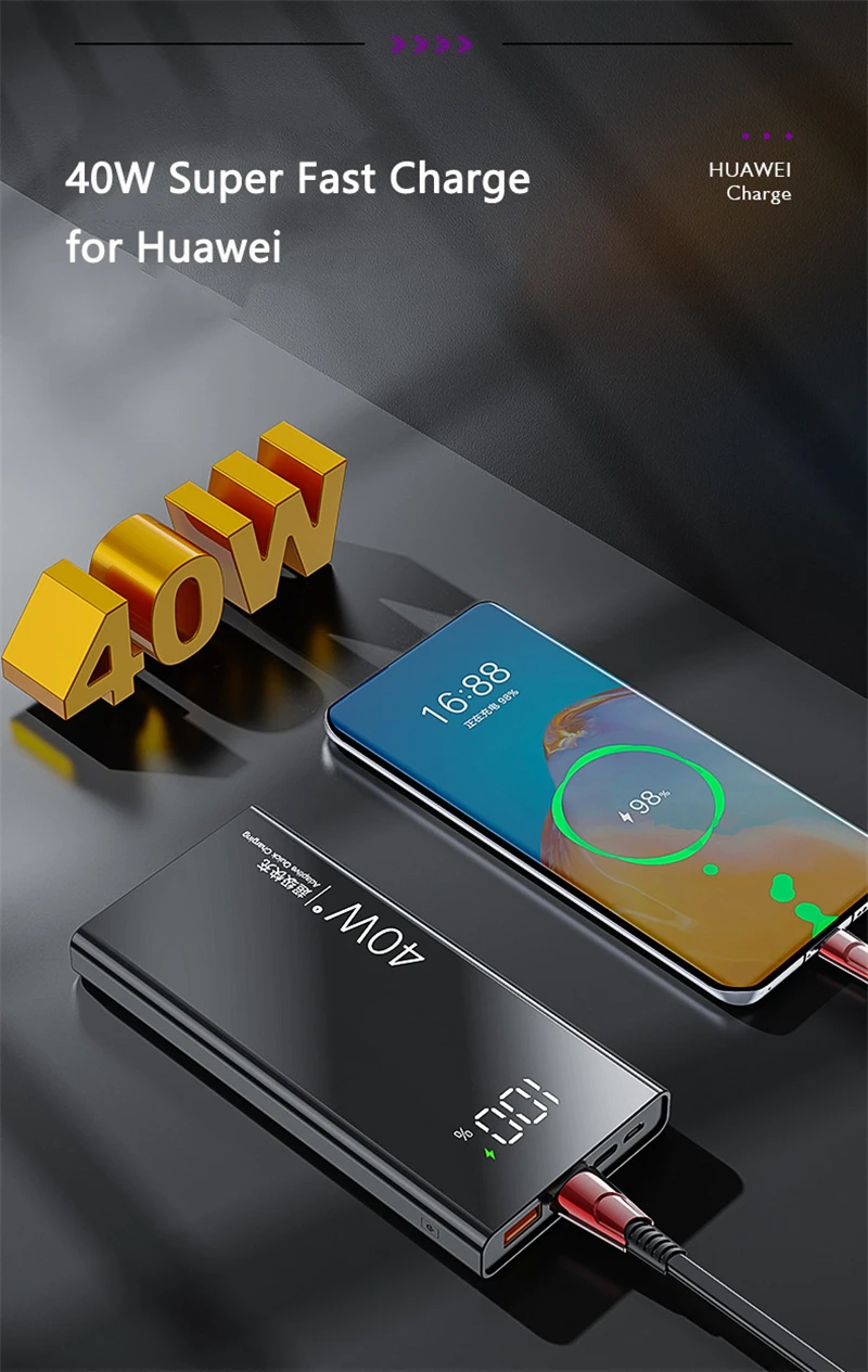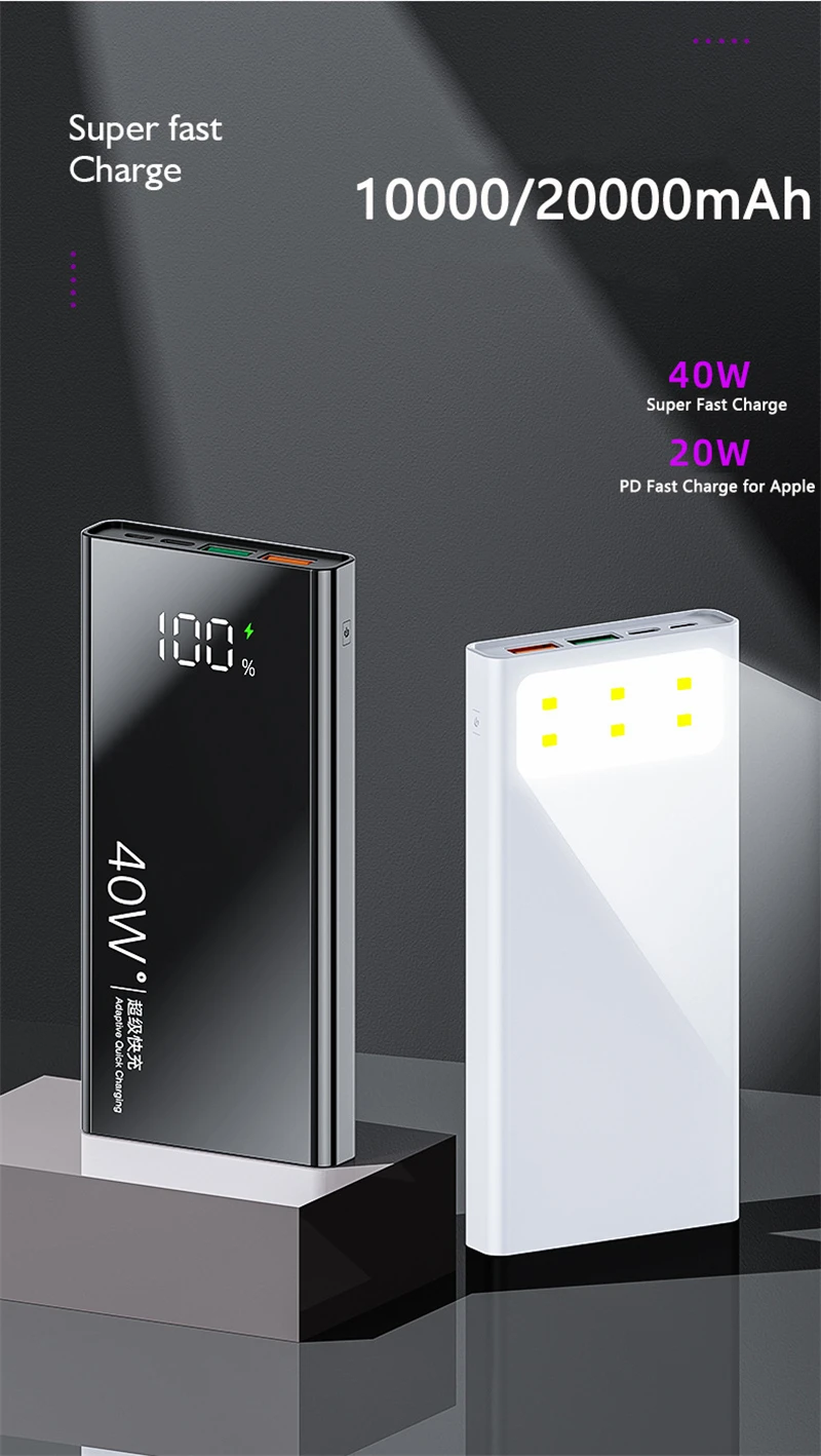 20000mAh 10000mAh Power Bank PD 40W Super Fast Charge for Huawei P40 20W Powerbank for iPhone 12 11 Samsung Poverbank with Light