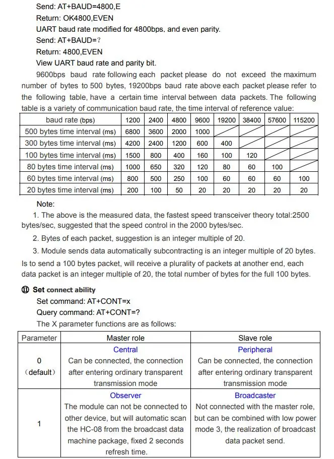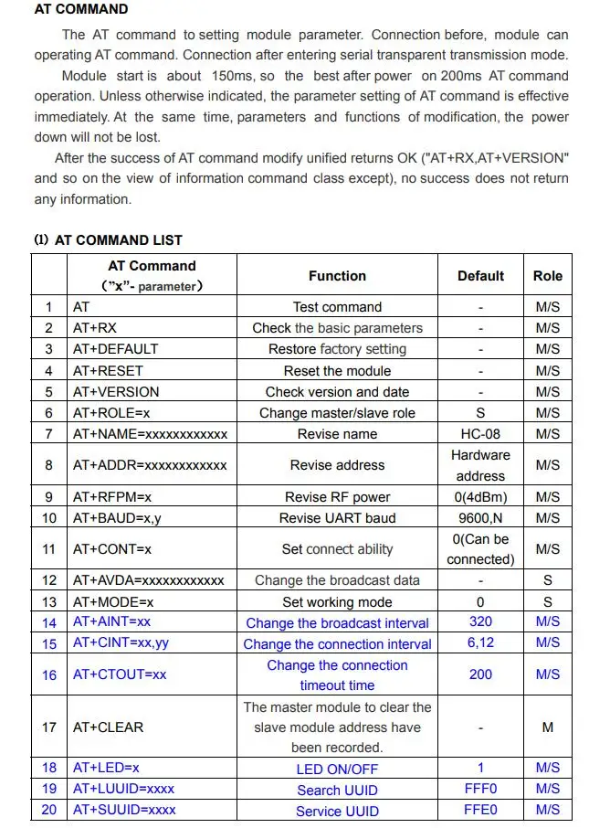 Модуль использует чип CC2540, конфигурация 256K байтового пространства, поддерживает по команде, пользователь может в соответствии с необходимостью изменения роли и серийной скорости передачи данных, название оборудования и другие параметры, использование гибкого.