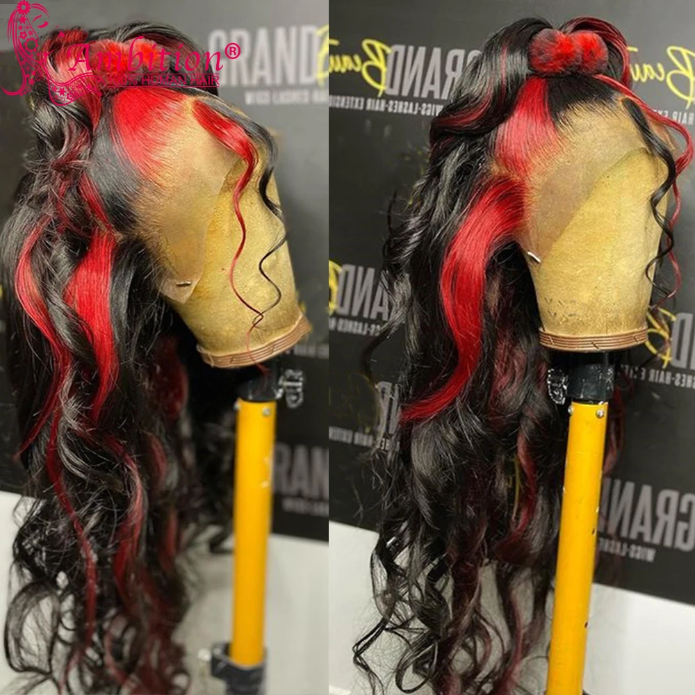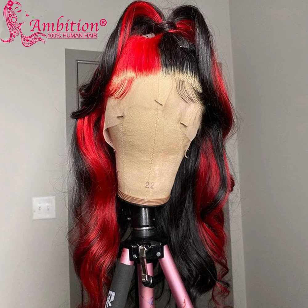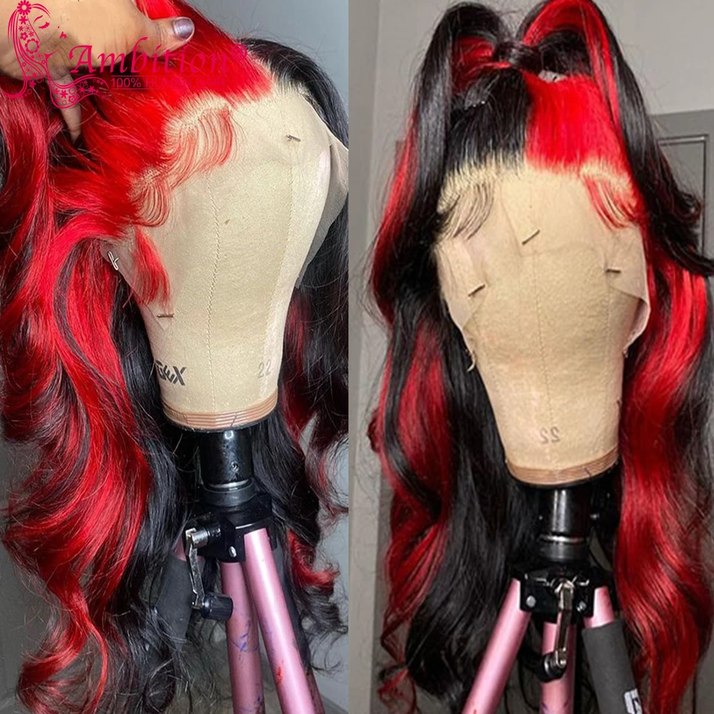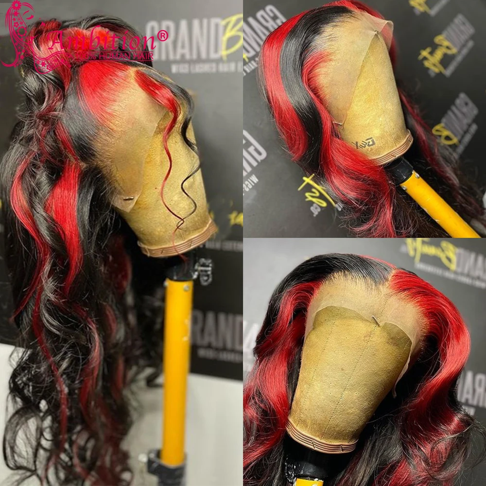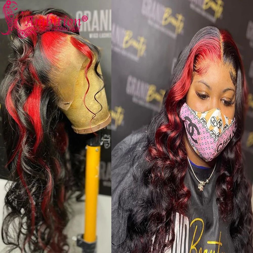 Ambition Remy Highlight красные человеческие волосы без клея, кружевные передние парики 13x6, кружевные передние парики 180%, волнистые кружевные парики, отбеленные узлы