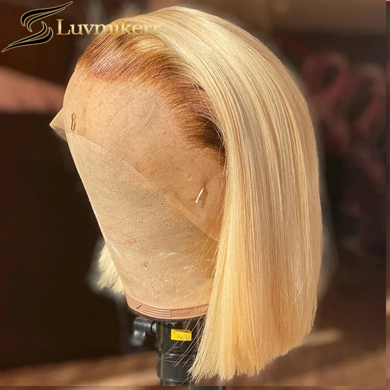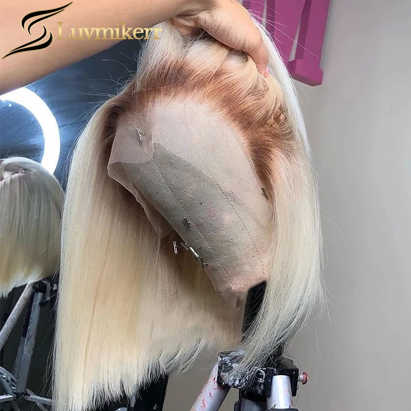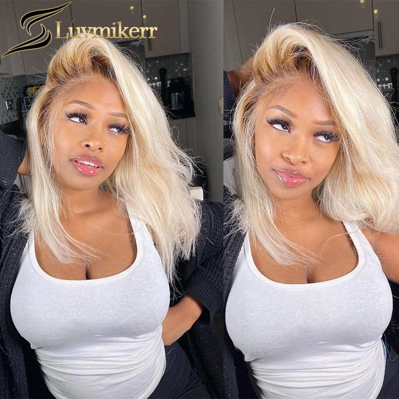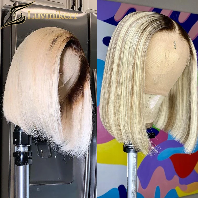 С прямыми короткий Боб эффектом деграде (переход от темного к 613 блондинка 13x6 Hd полные парики фронта шнурка человеческих волос черный Для женщин Невидимый полный прозрачный передний парик