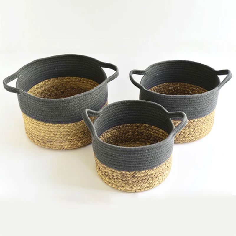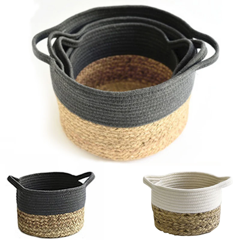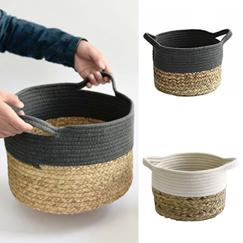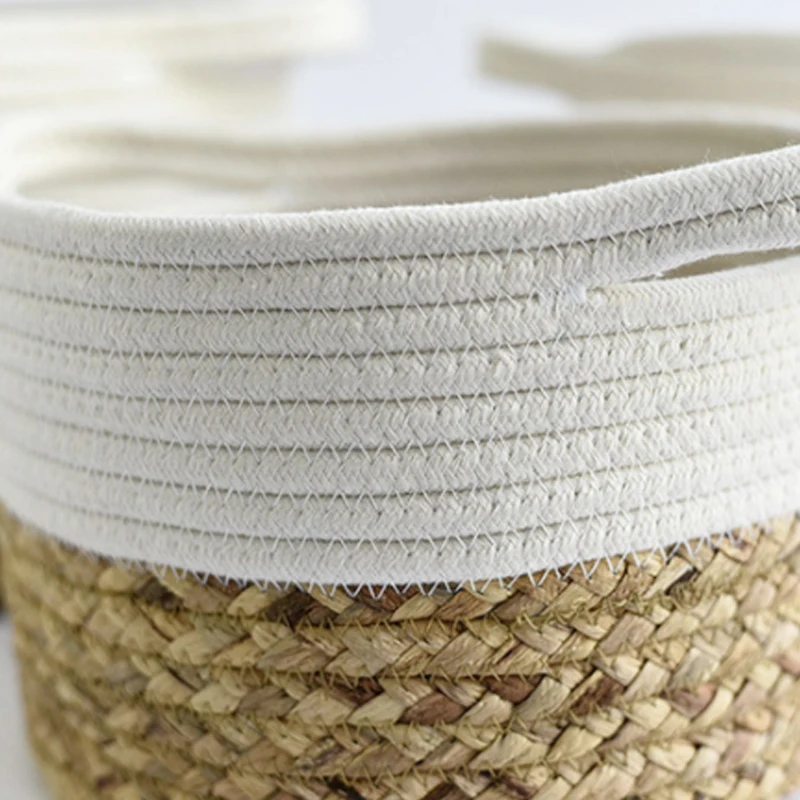 Стильная и практичная корзина для хранения, изготовленная из натуральной водоросли и хлопковой веревки.