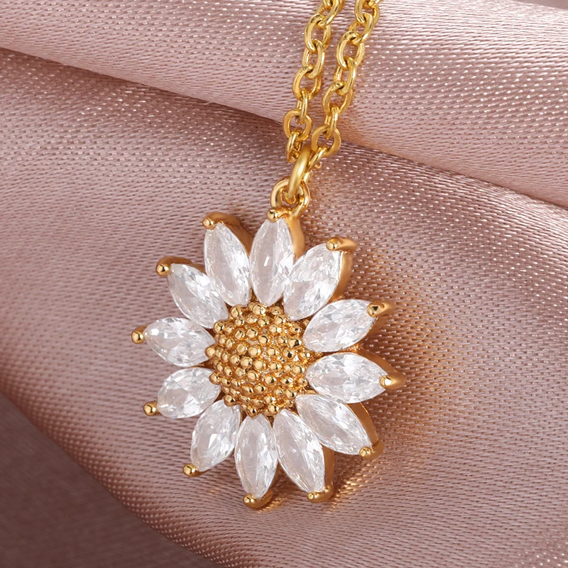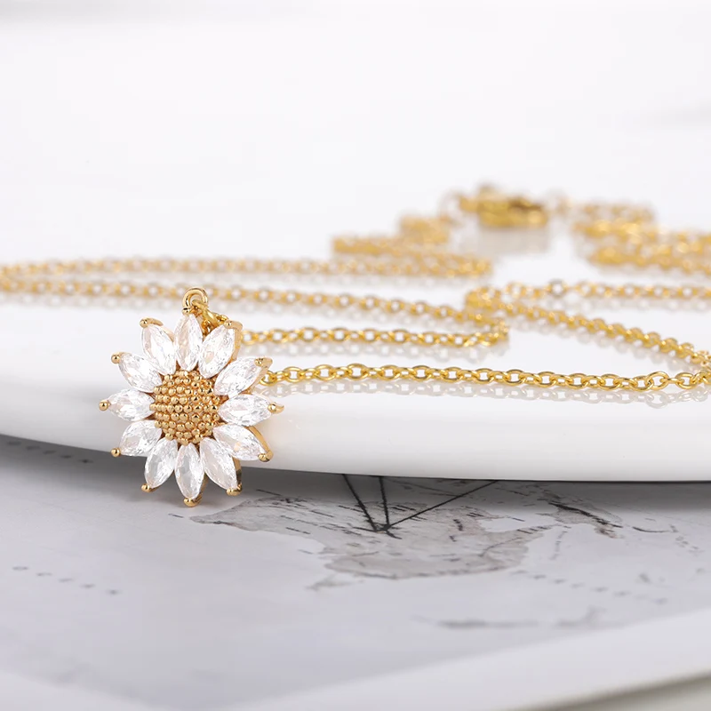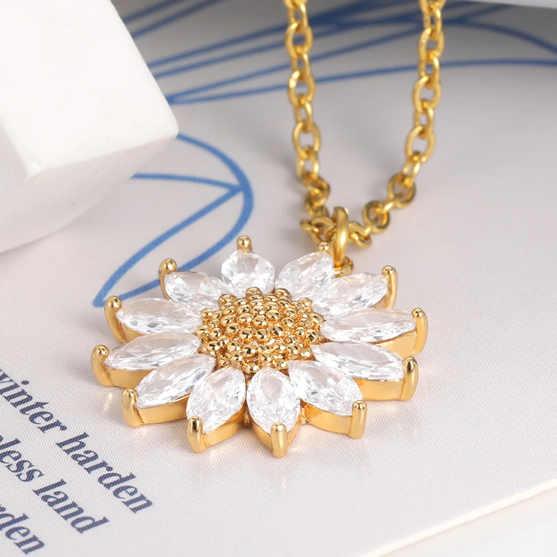 Модное ожерелье из подсолнечника для женщин, блестящий циркон, кулон, ожерелье, подарок, вечерние аксессуары, ювелирные изделия, оптовая продажа