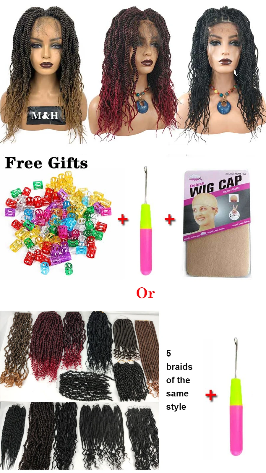 Длина волос: 20 дюймов Кружевная шапка: фронтальные парики Плотность волос: 150%-180% плотность Цвет волос: парики коричневого цвета Омбре Материал парика: термостойкое синтетическое волокно Прическа: длинные весенние вязаные крючком волосы