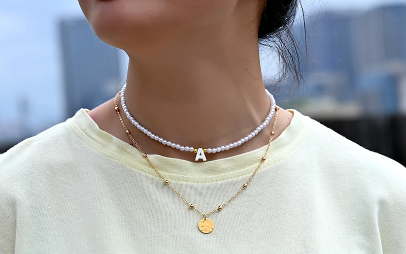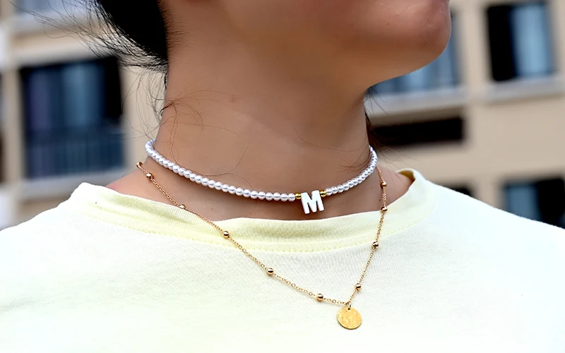 Тип товара: 2 шт./лот модные ожерелья с буквами жемчуг 2021 позолоченная цепочка кулон чокер для женщин винтажные летние ювелирные изделия