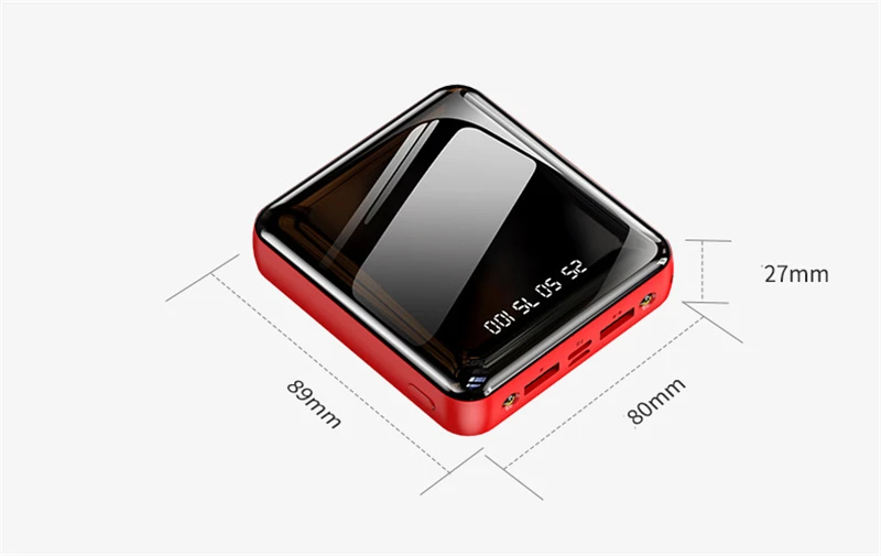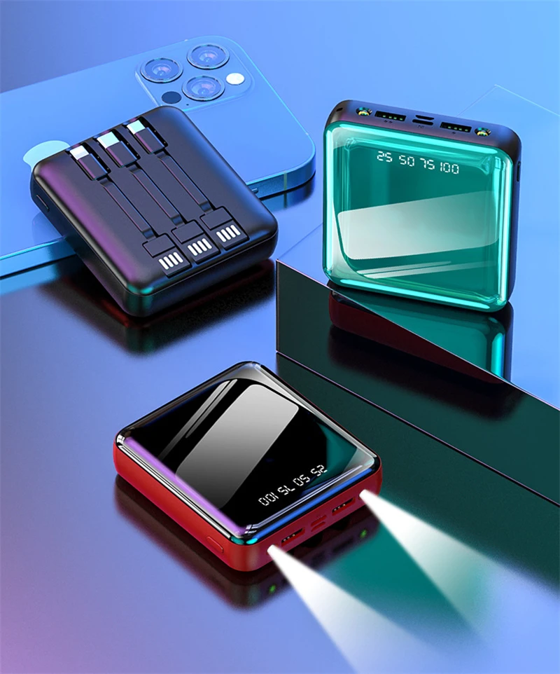 20000 мАч Мини Внешний аккумулятор с кабелем Micro USB Type C, портативное зарядное устройство с полным зеркальным экраном, цифровой дисплей, внешний аккумулятор, светодиодный светильник