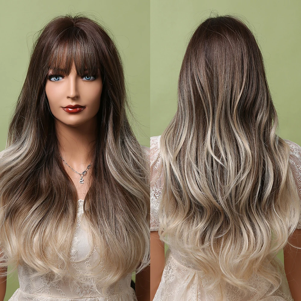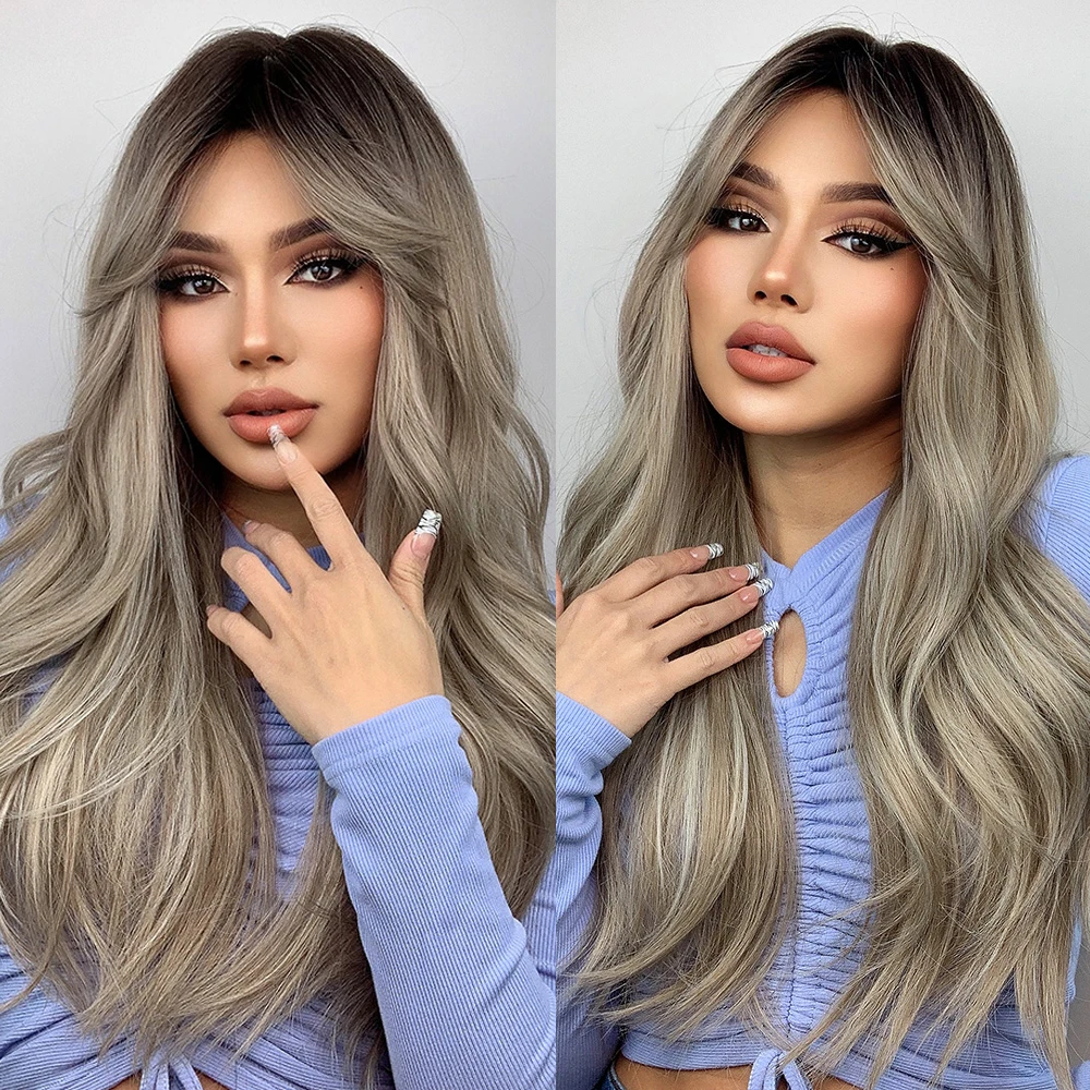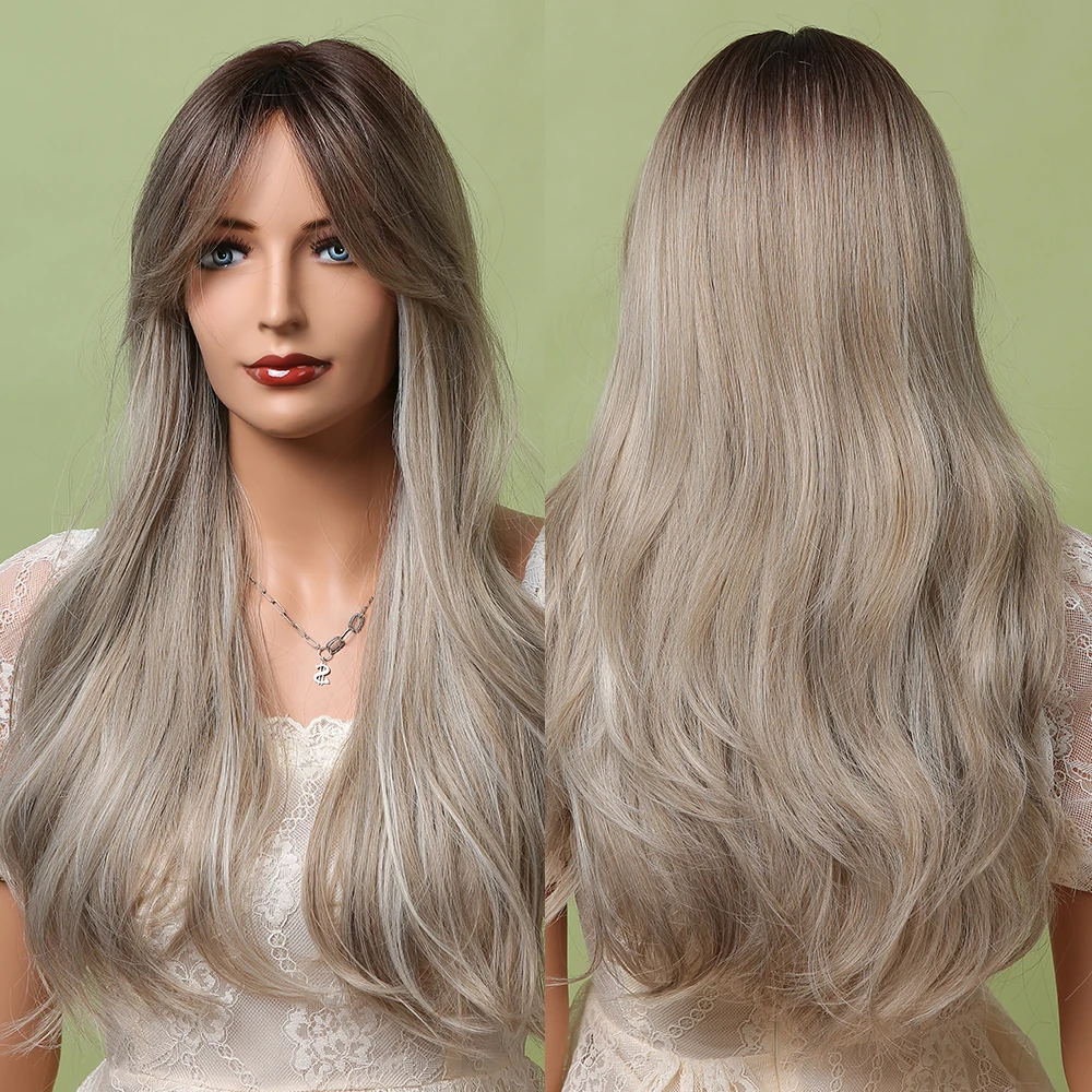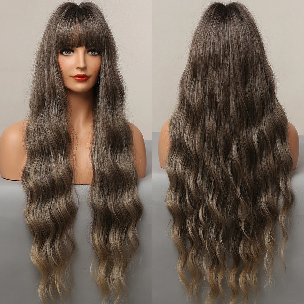 ALAN EATON, длинные волнистые синтетические волосы, парики с челкой, черные, коричневые, серые, пепельные, вечерние, повседневные, термостойкие парики для женщин