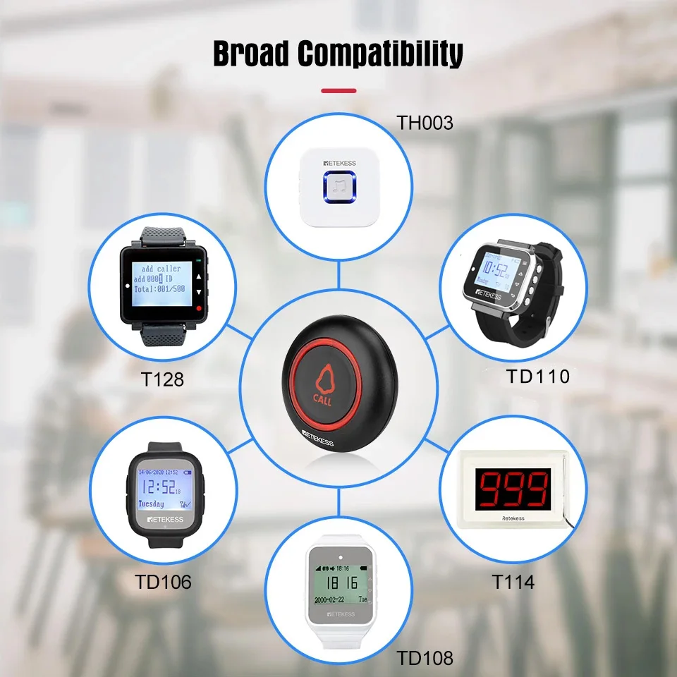 3.The pager is widely compatible and can be used with a variety of hosts including T128, T106, T114,TD110,TH003.TD019 and TD105 cannot be used together.