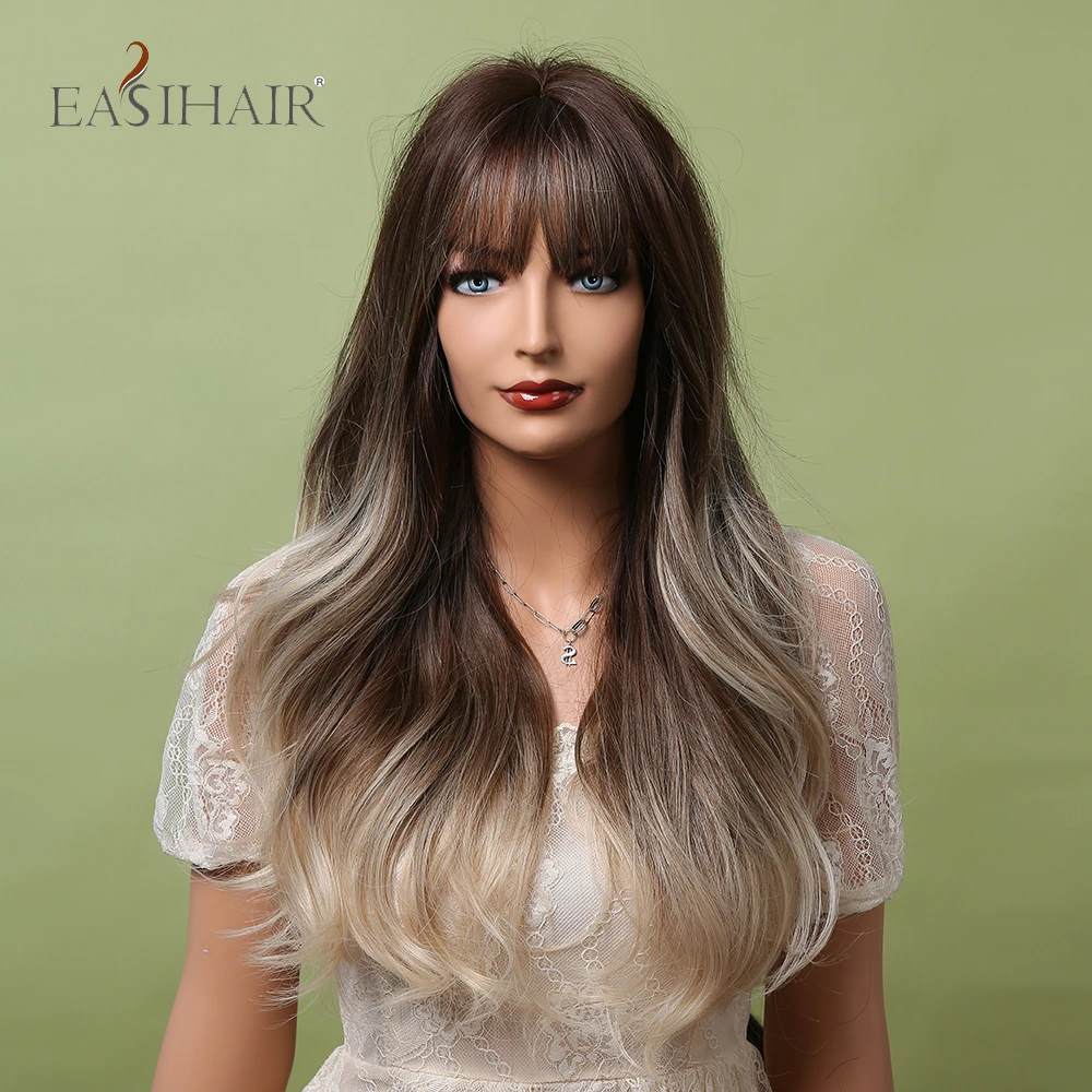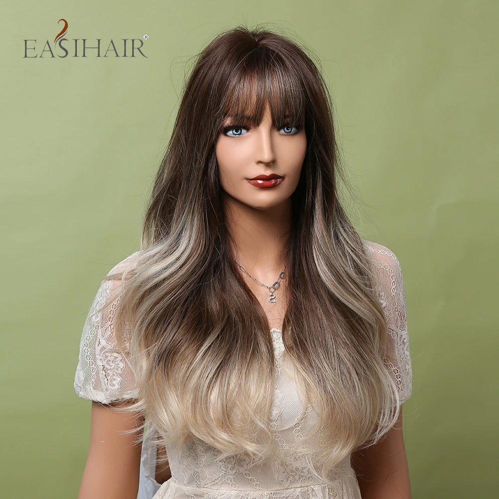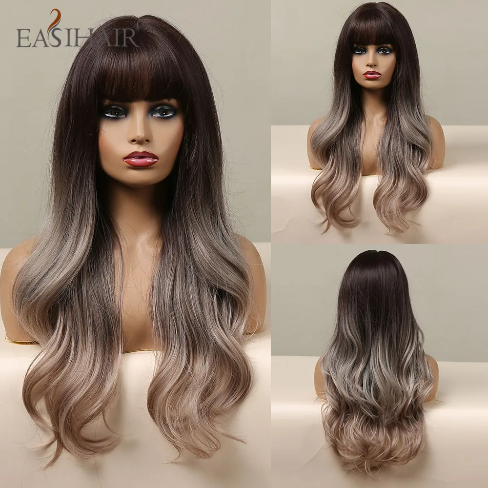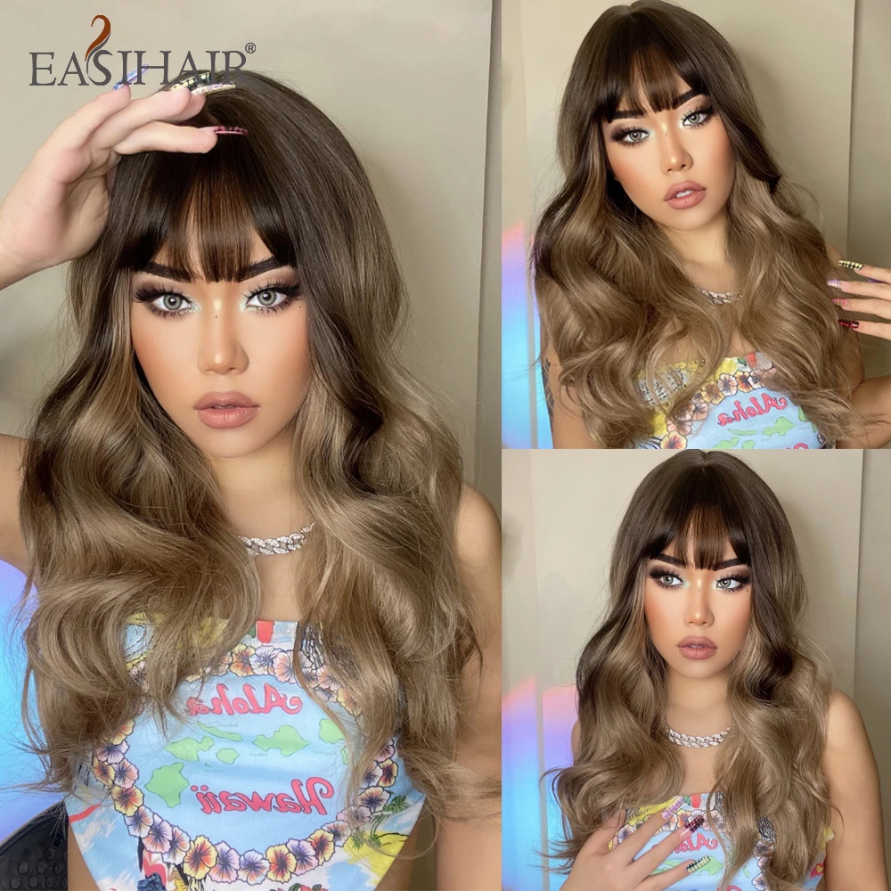 Длинные волнистые синтетические парики с челкой EASIHAIR Ombre пепельно-коричневый блонд термостойкие парики для черных женщин Повседневные Вечерние накладные волосы