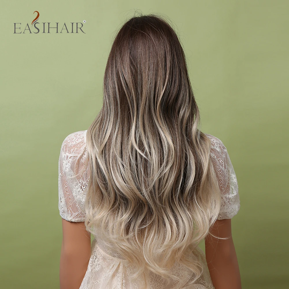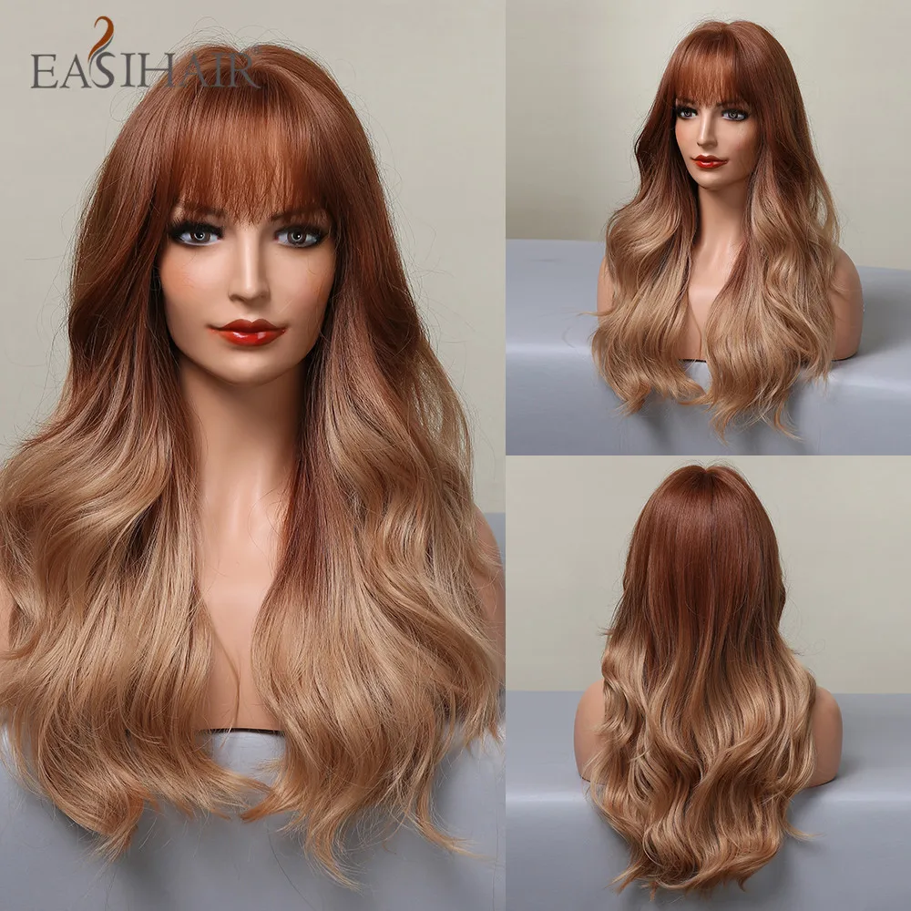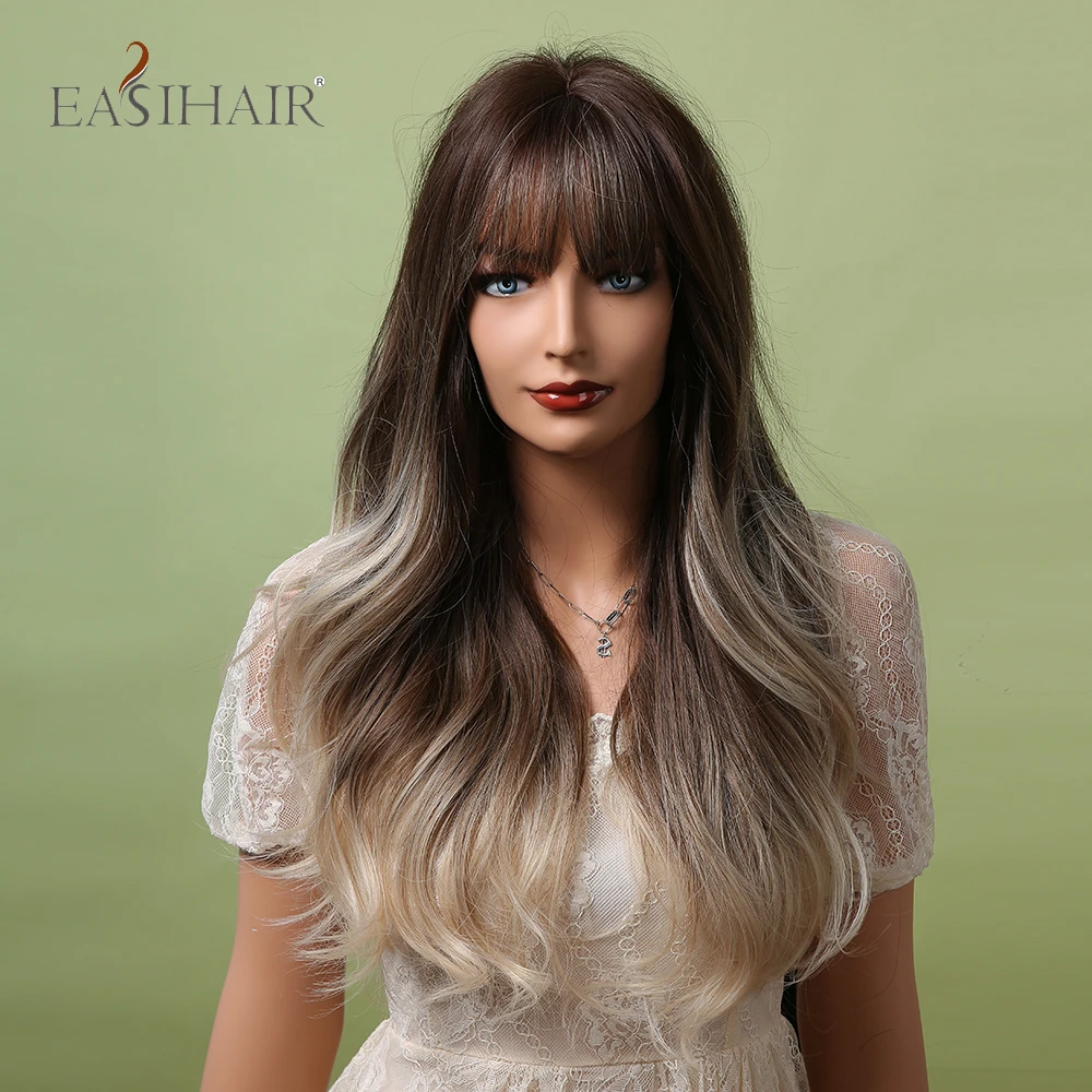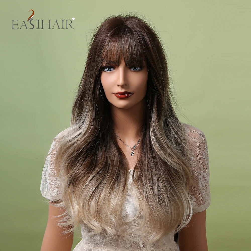 Длинные волнистые синтетические парики с челкой EASIHAIR Ombre пепельно-коричневый блонд термостойкие парики для черных женщин Повседневные Вечерние накладные волосы