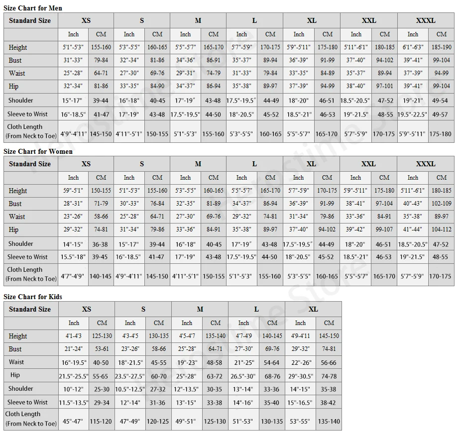 Таблица размеров для разных полов, поэтому, пожалуйста, при выборе размера, сообщите нам свой пол (мужчина, женщина, ребенок). (Е. Г. Детский XL)