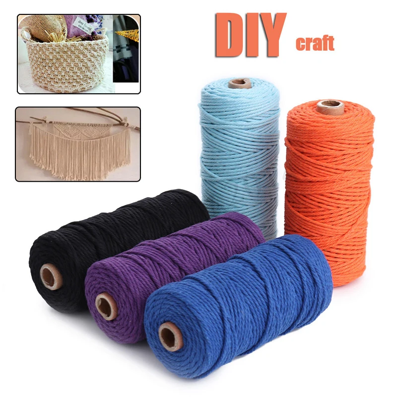 Список: 3 мм цветная хлопковая веревка x 1 рулон (100 м)