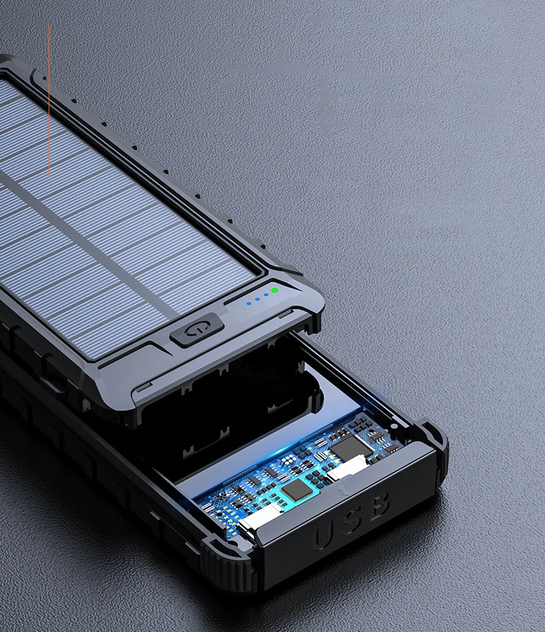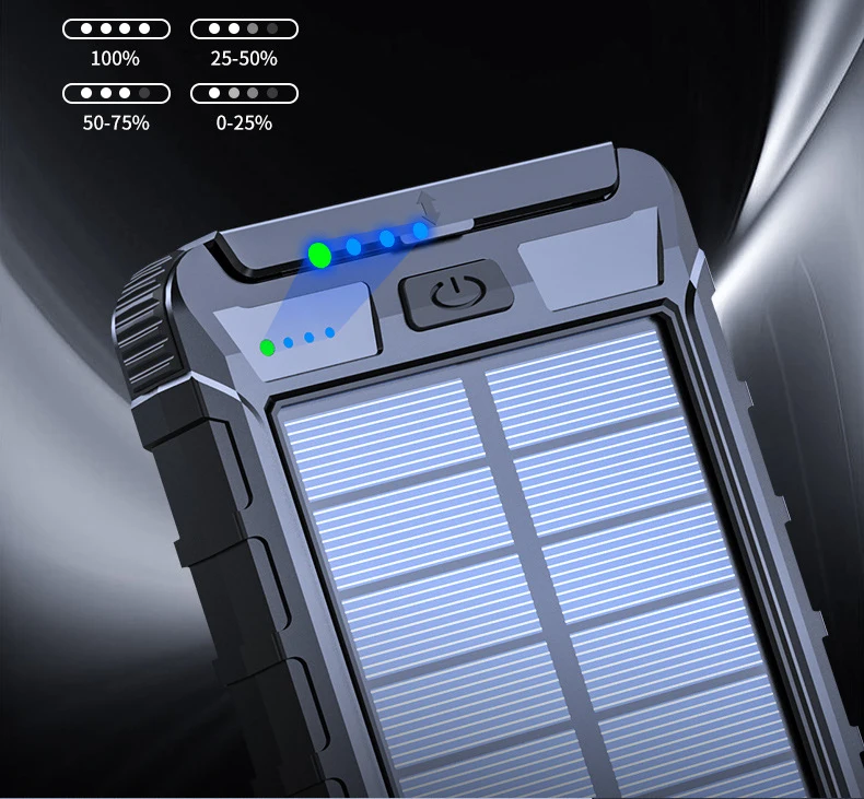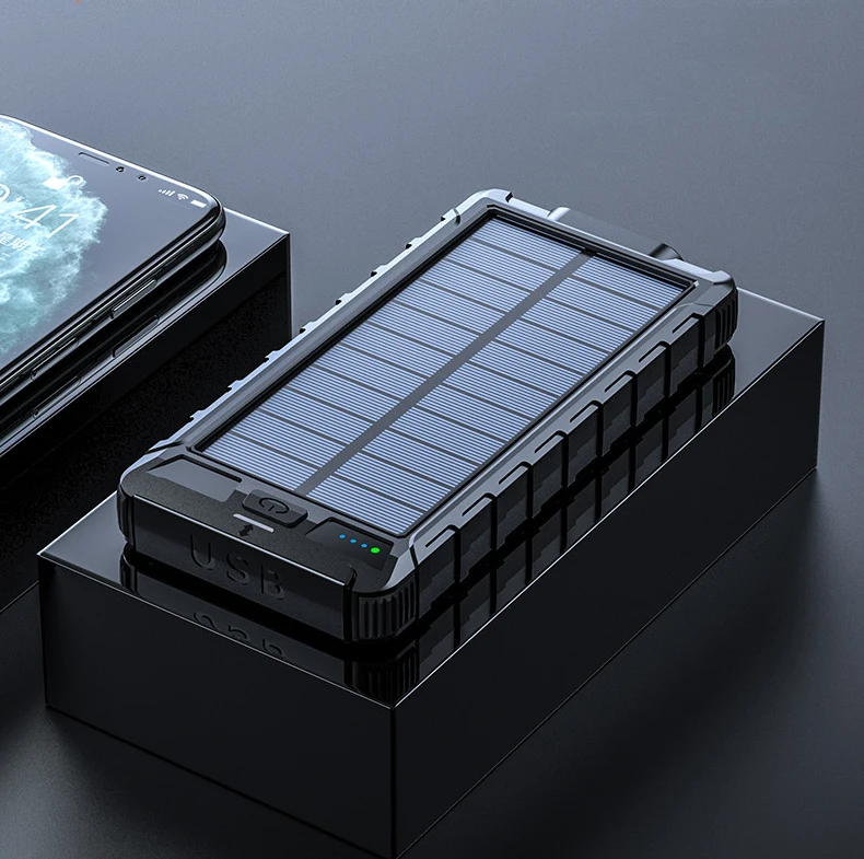20000 мАч Солнечный внешний аккумулятор для iPhone Xiaomi Huawei Samsung портативное зарядное устройство Внешний аккумулятор повербанк с двойным светодиодным фонариком и компасом