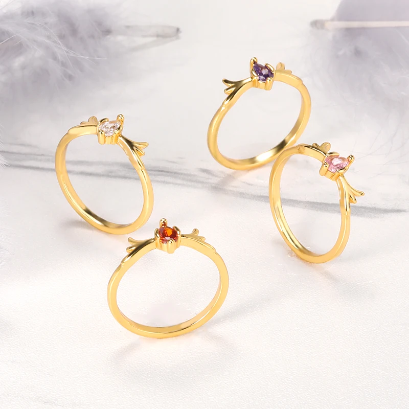 Милые Кристальные Рога лося кольца рога оленя фиолетовый розовый циркон влюбленные пара кольцо для женщин обручальное свадебное ювелирное изделие подарки