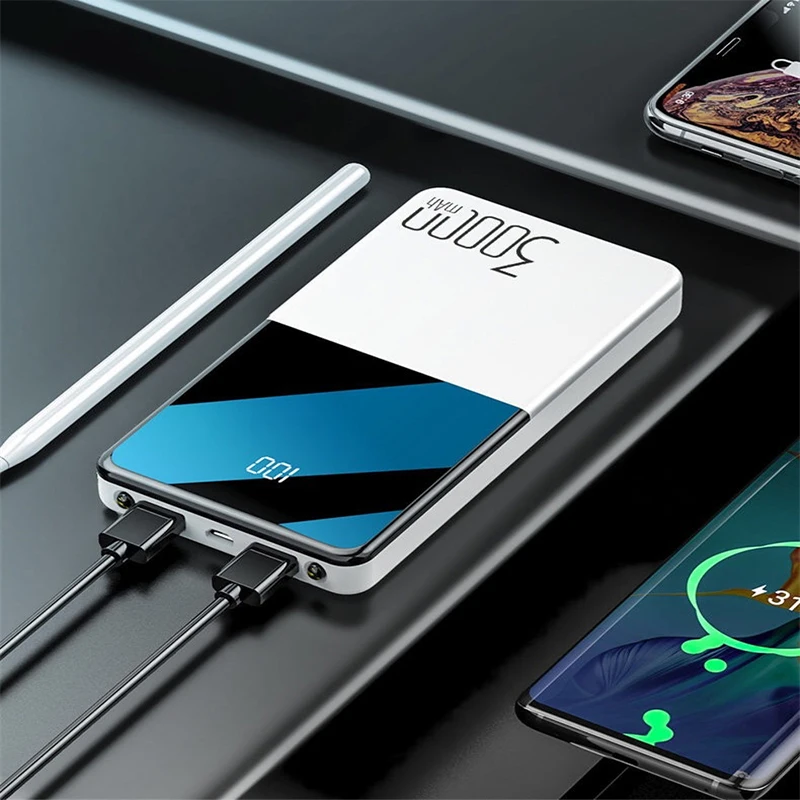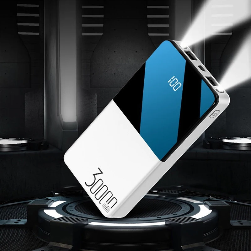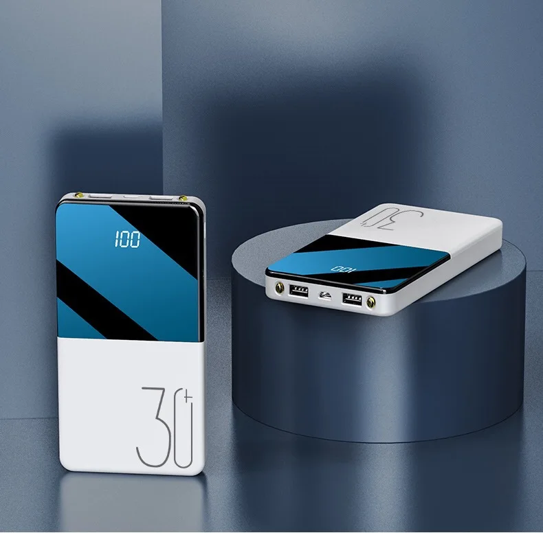 Внешний аккумулятор 30000 мАч, полностью зеркальный экран, цифровой дисплей, портативное зарядное устройство, внешний аккумулятор, внешний аккумулятор, повербанк с двойным светодиодный фонариком