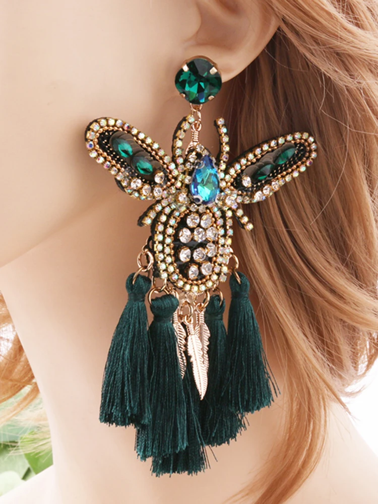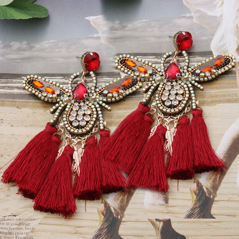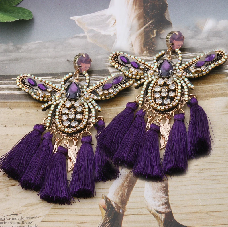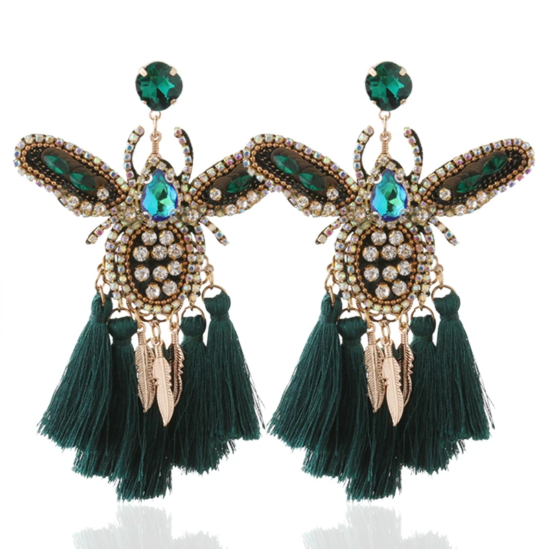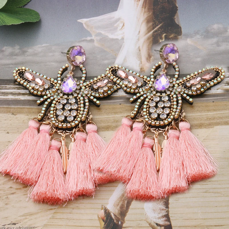 Drop Earring Bohemian Long Earrings Pearl Crystal Fashion Big Ear Drops Drop Charm Grape String Earrings