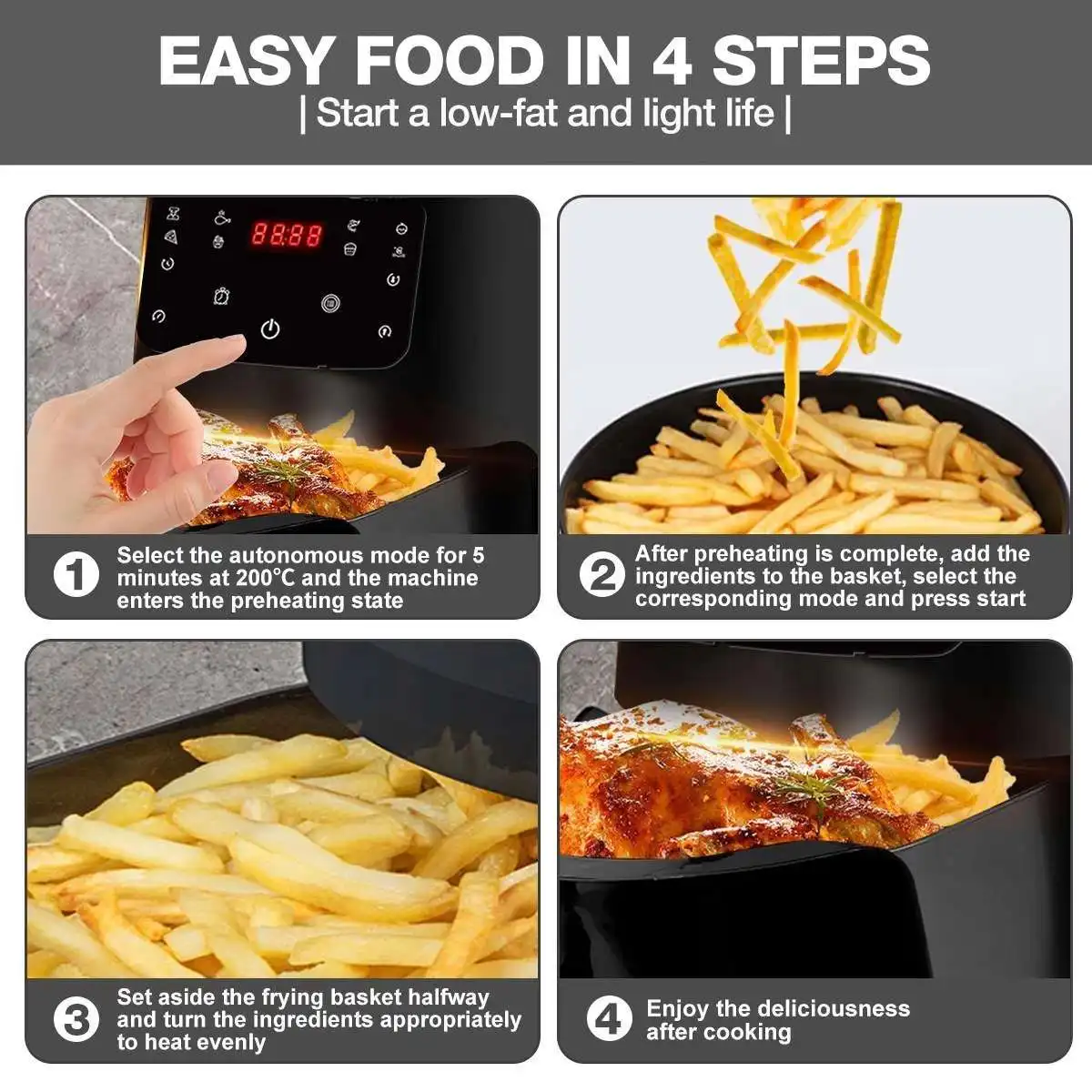 -Большая 4,5 л пространство для приготовления пищи: он может Фрай более вкусная еда в одно и то же время и легко удовлетворять ежедневные потребности каждого члена семьи.