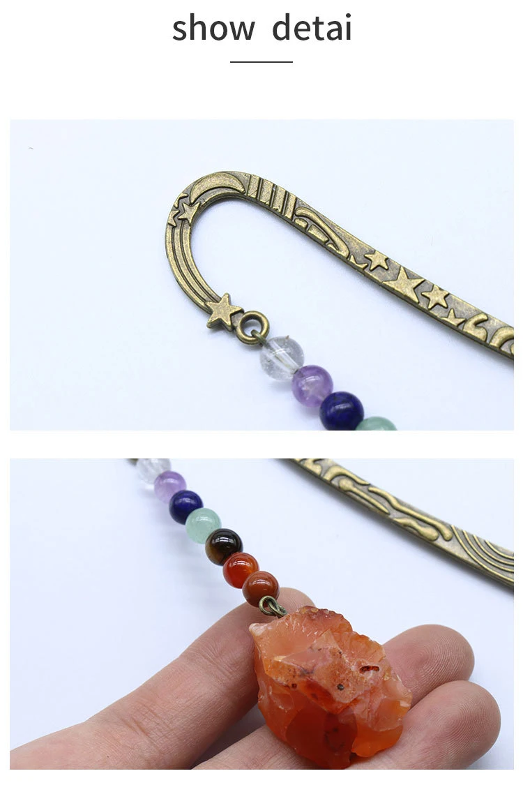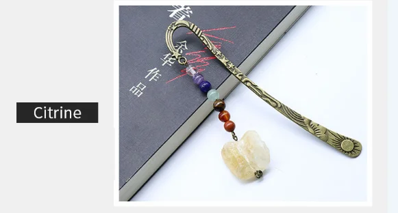 Новый стиль 6 шт./лот кристально-зеленый авантюрин цитрин сырой камень закладки семь чакр Творческий 12 см длинный сплав закладки