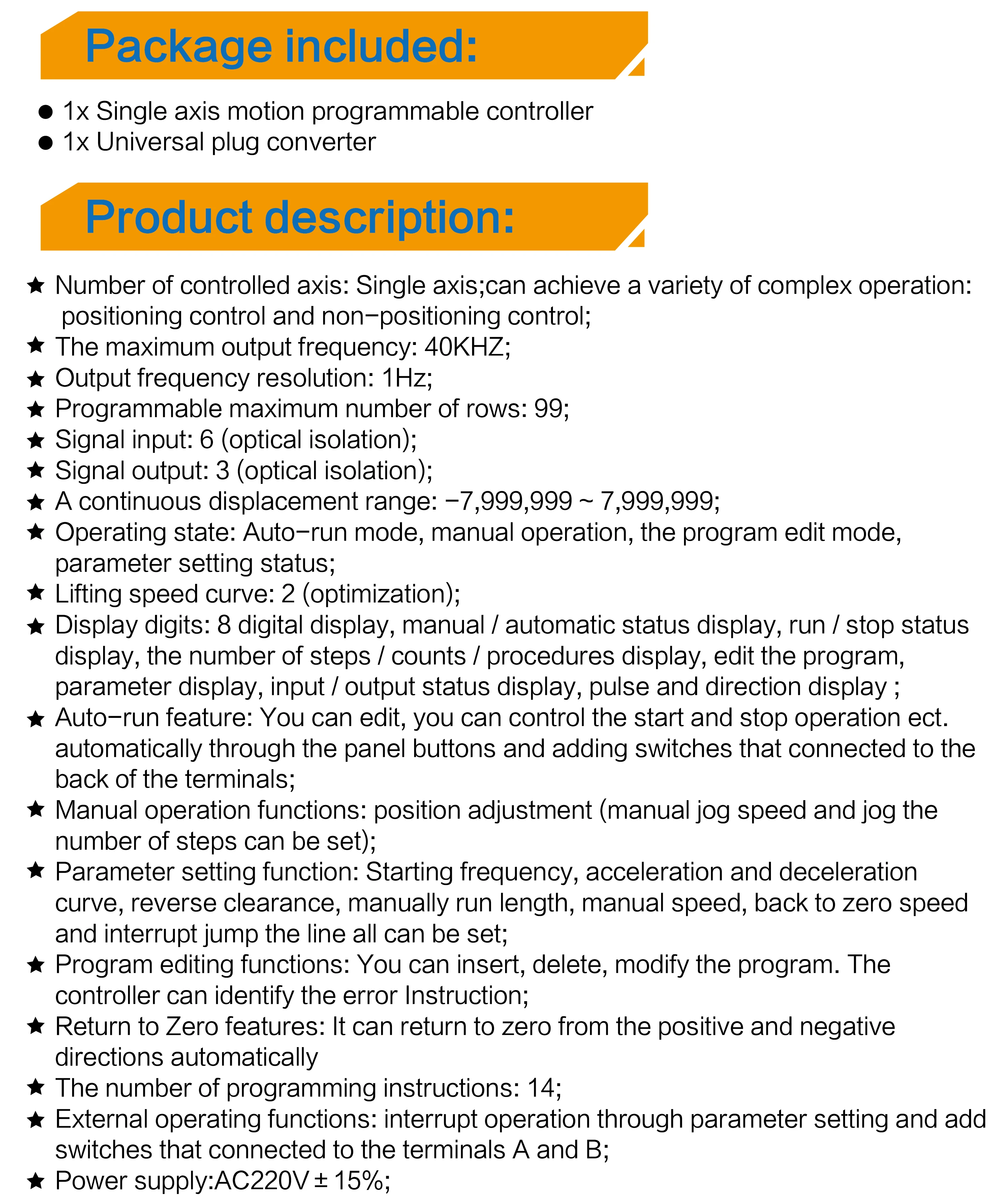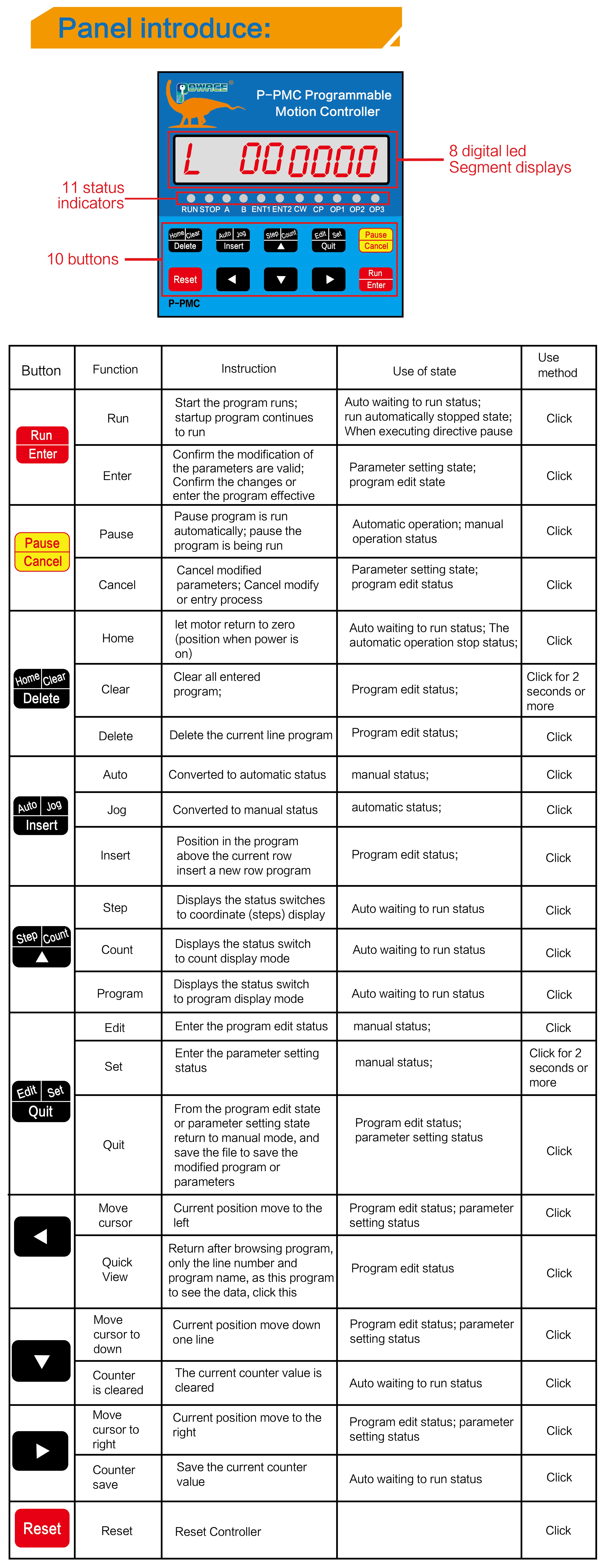 Цифры дисплея: 8 цифровых дисплеев, ручной/автоматический дисплей состояния, запуск/остановка отображения состояния, количество шагов/подсчетов/процедур отображения, правка программы, отображение параметров, отображение состояния ввода/вывода, отображение импульса и направления;