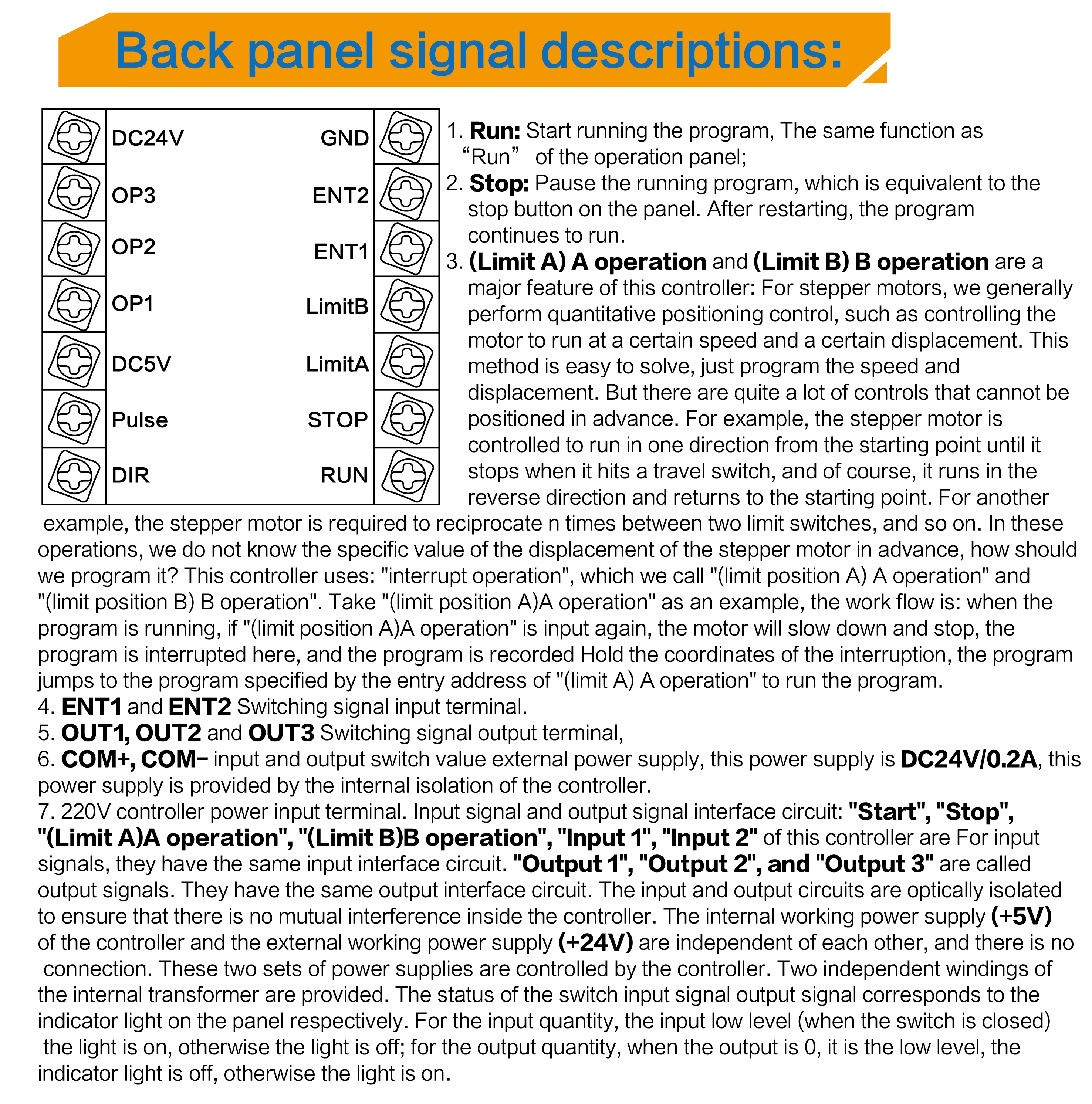 7. 220 в контроллер входной мощности терминала. Схема интерфейса входного сигнала и выходного сигнала: «СТАРТ», «стоп», «(предел A) операция», «(предел B) операция «B», «вход 1», «Вход 2» этого контроллера предназначен для входных сигналов, они имеют ту же схему входного интерфейса. «Выход 1», «выход 2» и «выход 3» называются выходными сигналами. Они имеют ту же схему выходного интерфейса. Входные и выходные схемы оптически изолированы, чтобы гарантировать отсутствие взаимных помех внутри контроллера. Внутренний рабочий источник питания (+ 5 В) контроллера и внешний рабочий источник питания (+ 24 В) не зависят друг от друга, и нет подключения. Эти два набора источников питания контролируются контроллером. Предусмотрены две отдельные обмотки внутреннего трансформатора. Состояние выходного сигнала входного сигнала переключателя соответствует индикаторному светильник на панели соответственно. Для входного количества Вход низкого уровня (когда выключатель закрыт) светильник включен, в противном случае светильник выключен; Для выходного количества, когда выход 0, это низкий уровень, светодиодный светильник выключен, в противном случае светильник включен.