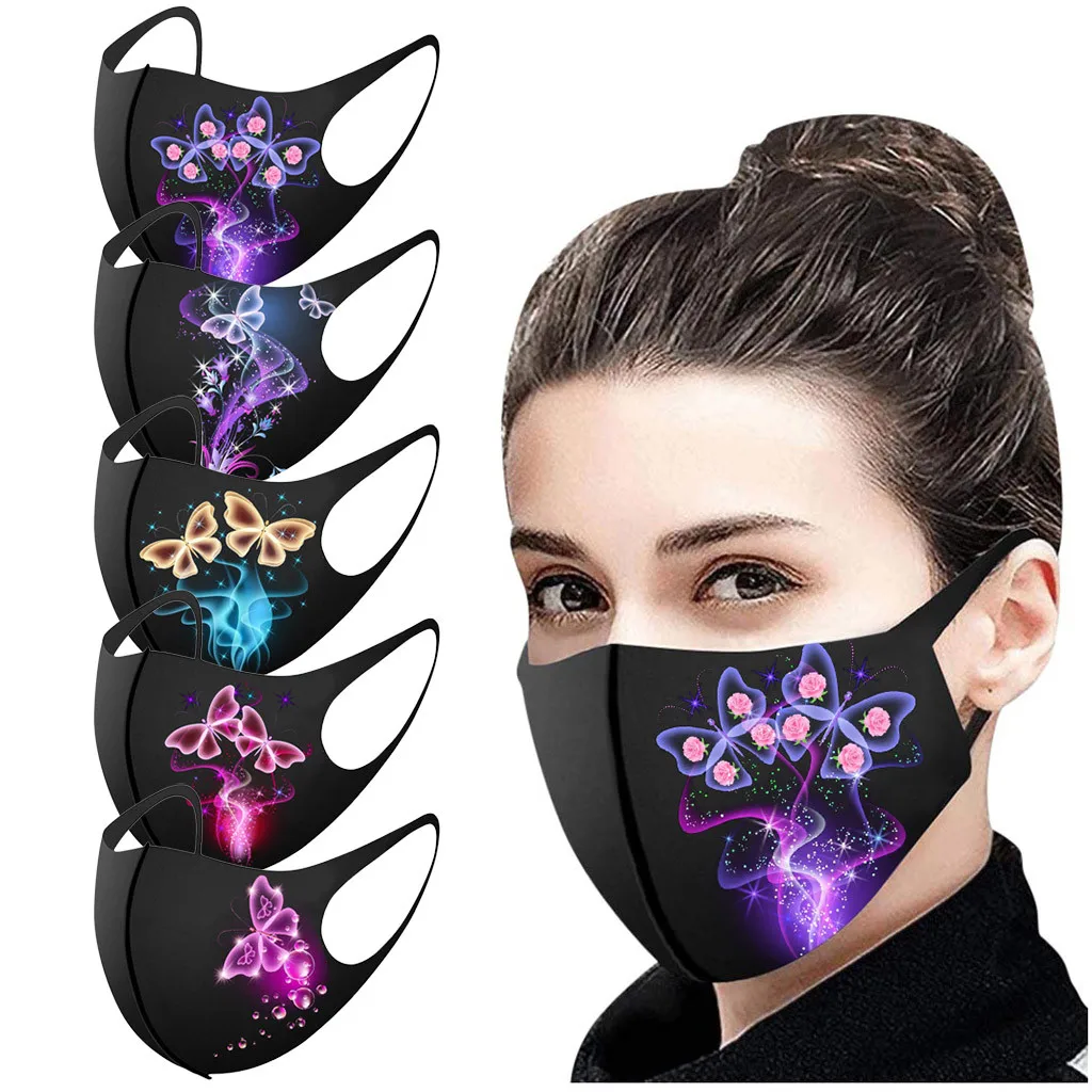 Забавная маска для лица с 3D-принтом бабочки, регулируемые лямки для взрослых, многоразовый тканевый маскарадный