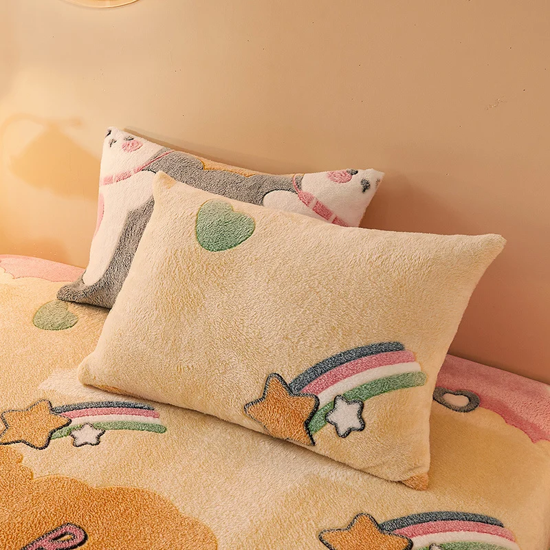 2 шт., мультяшный принт, плюшевая подушка, чехол 48*74 см, прямоугольная спальная подушка, чехол, зимняя теплая мягкая фланелевая Подушка, чехлы для домашнего декора