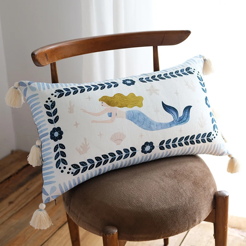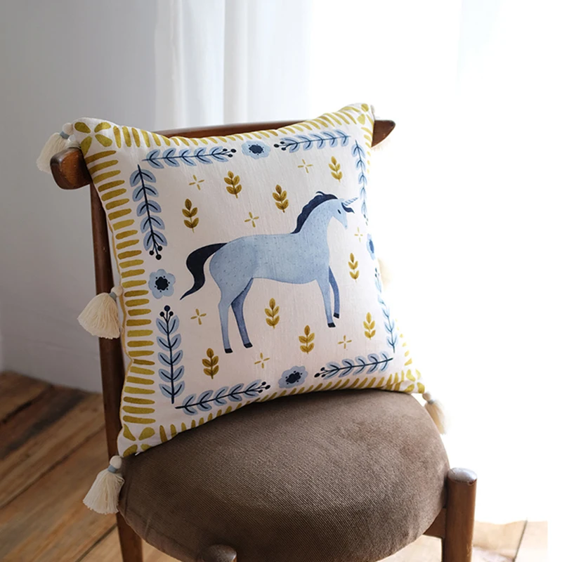 Iterm: домашний чехол для подушки с единорогом, удобный хлопковый декор для девочек, детская подушка Фэнтези с кисточками, ручная роспись