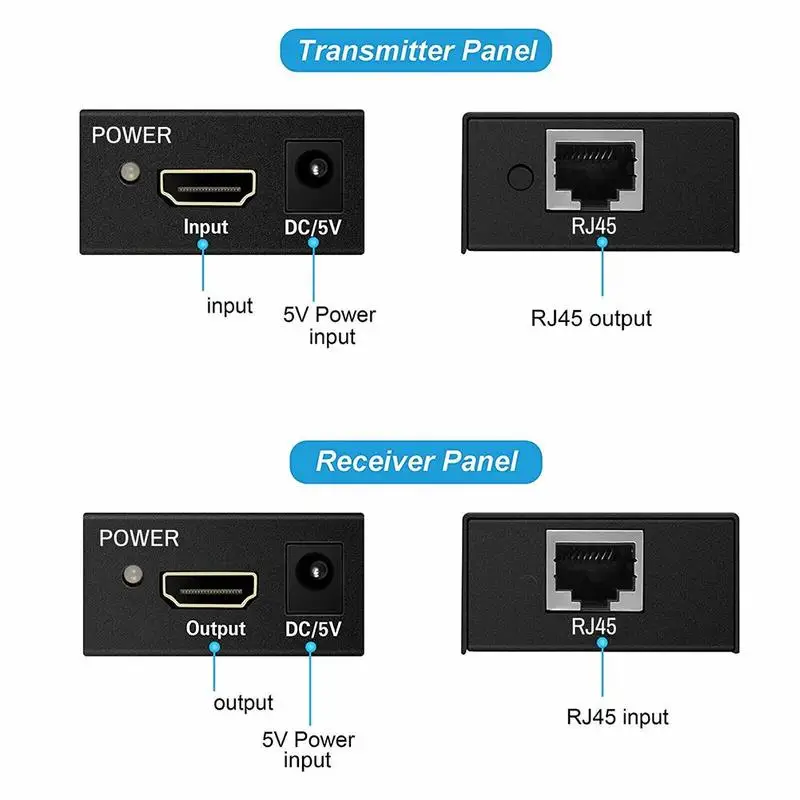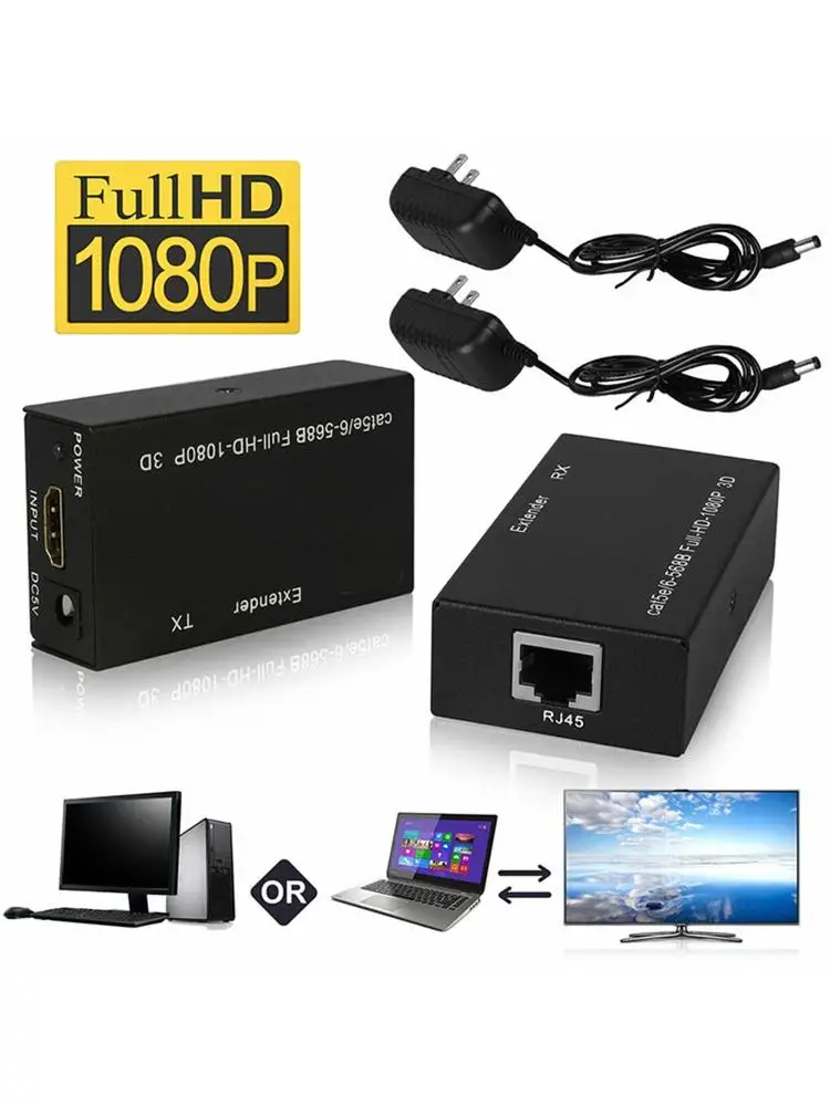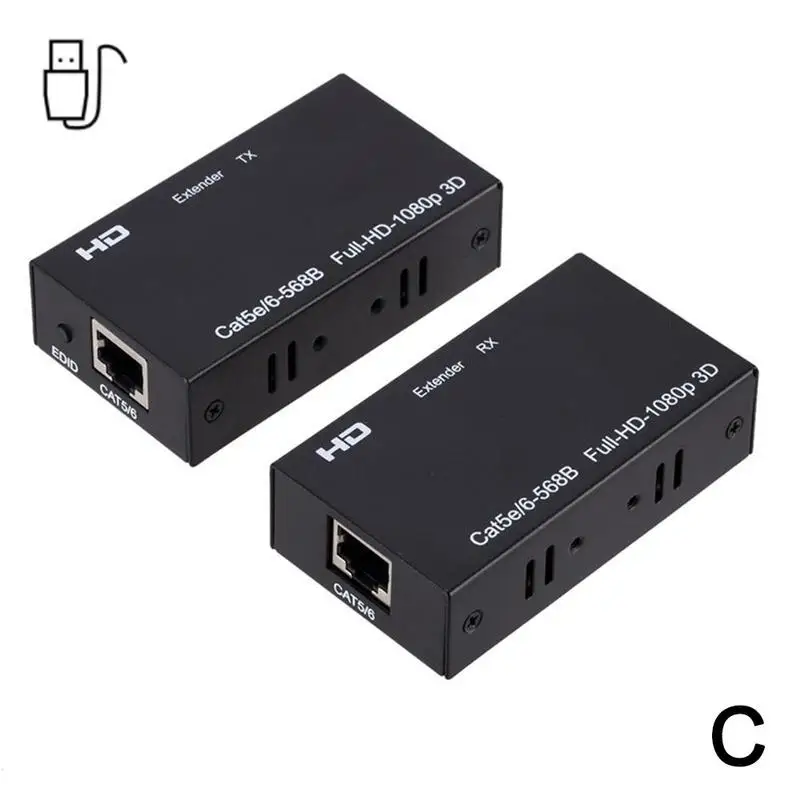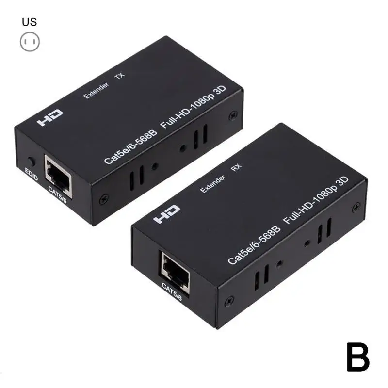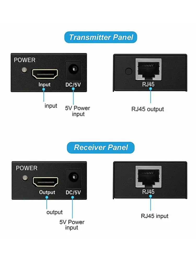 The HDMI-compatible network extender replaces the HDMI-compatible cable over a CAT5e or CAT6 cable (recommended) and can extend the HDMI signal for 60 meters, reducing costs. As HDMI cables are expensive, it is very difficult to transmit HDMI-compatible signals over long distances. The purpose of the extender is to achieve long-distance signal transmission with low-cost wires.