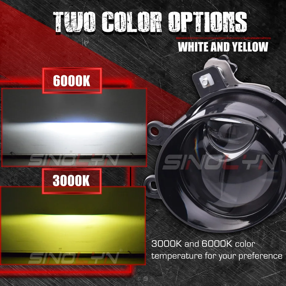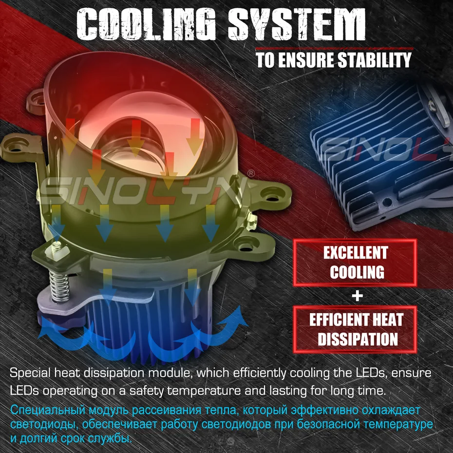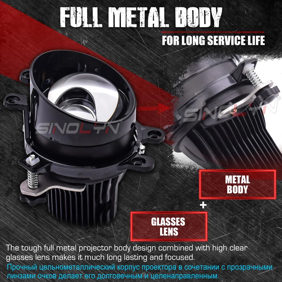 Sinolyn Bi светодиодный Hyperboloid матрица противотуманные линзы, извлекает выгоду из автомобильной светодиодный чипов и охлаждение, светильник выход Sinolyn светодиодный остается оптимальной даже после того, как светодиодный была разогревается. Вы также наслаждаетесь мгновенным максимальным выходом на светильник как при тусклом, так и при дальнем свете и уменьшением емкости с течением времени по сравнению с ксеноном.