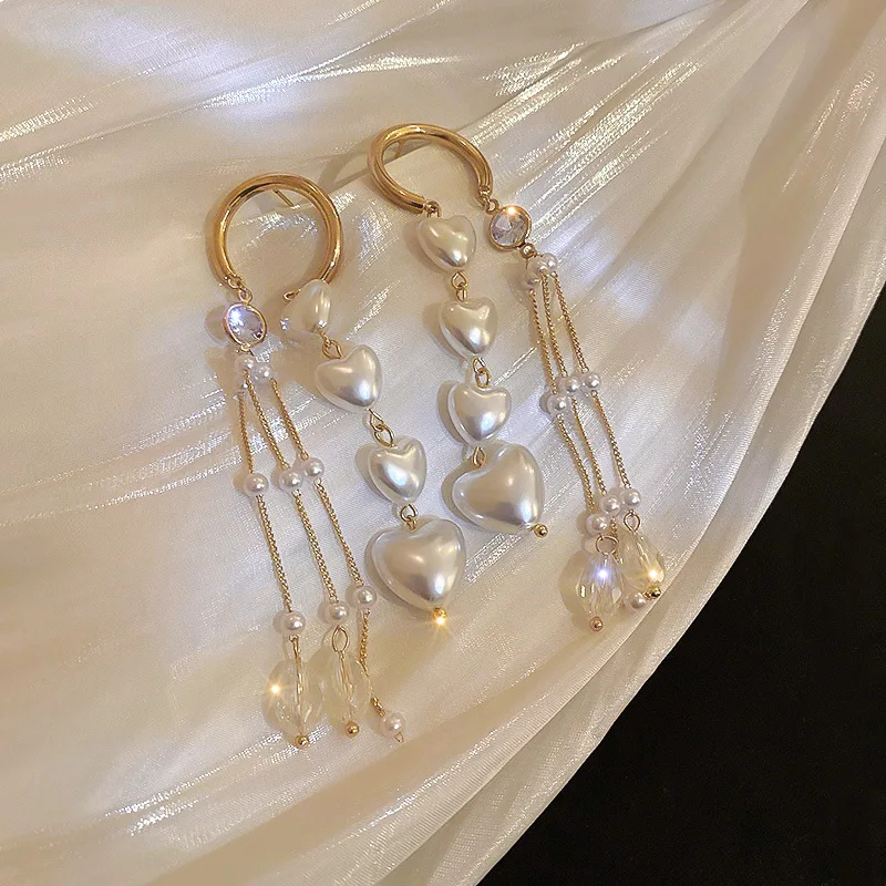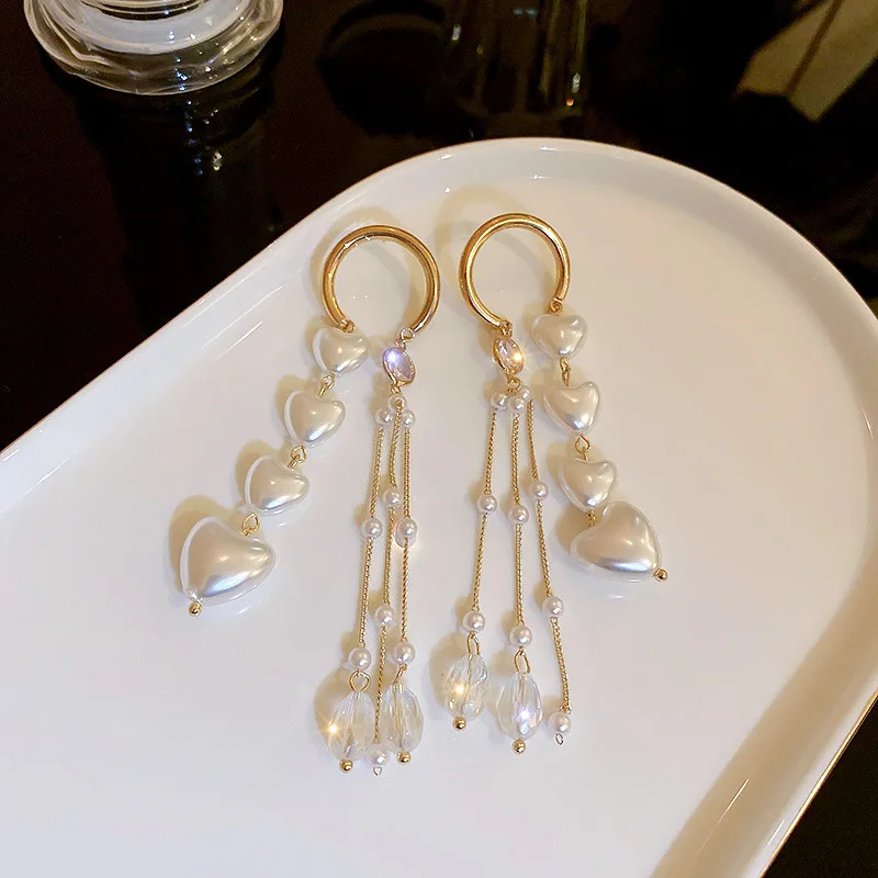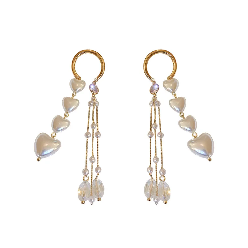 Форма: серьги с кисточками и кристаллами в форме сердца с жемчугом