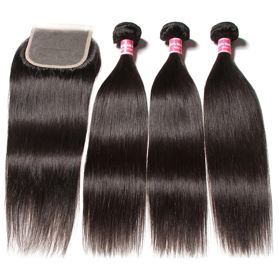 100% человеческие волосы пучок предложения с 4X4 Кружева закрытия