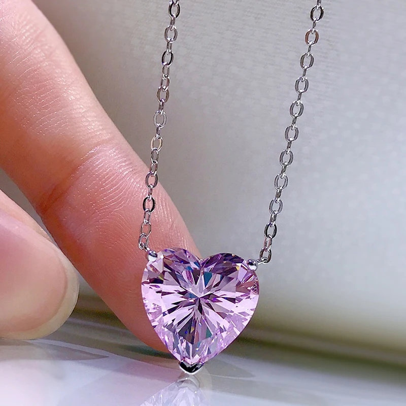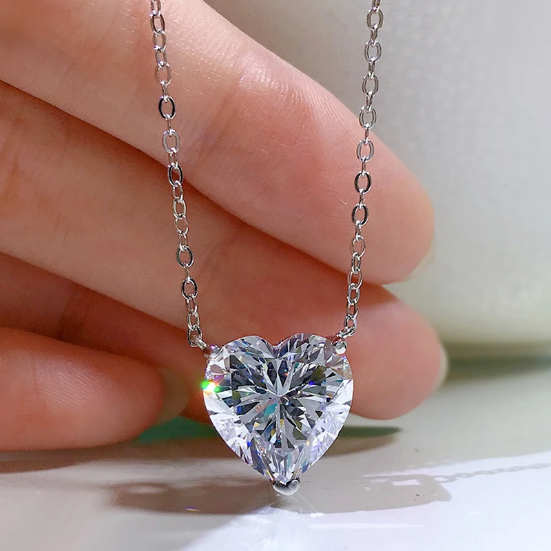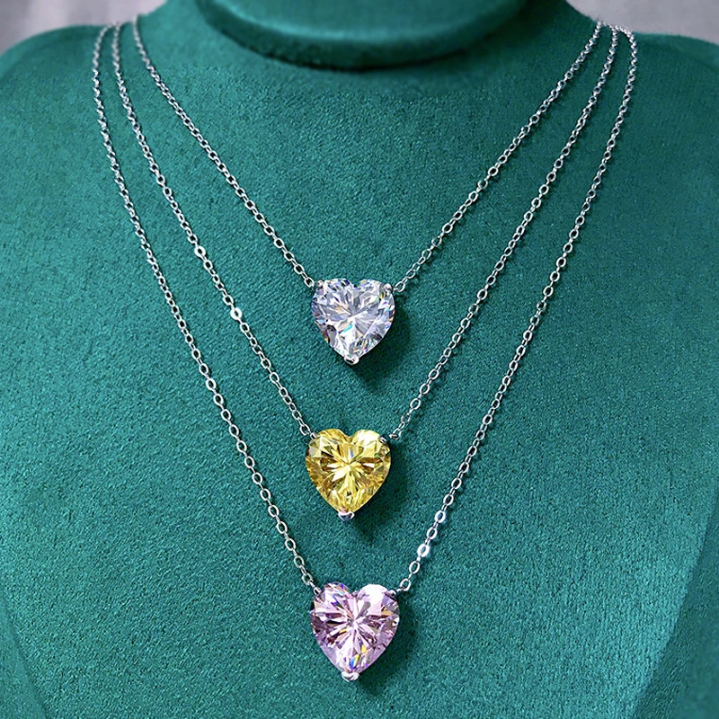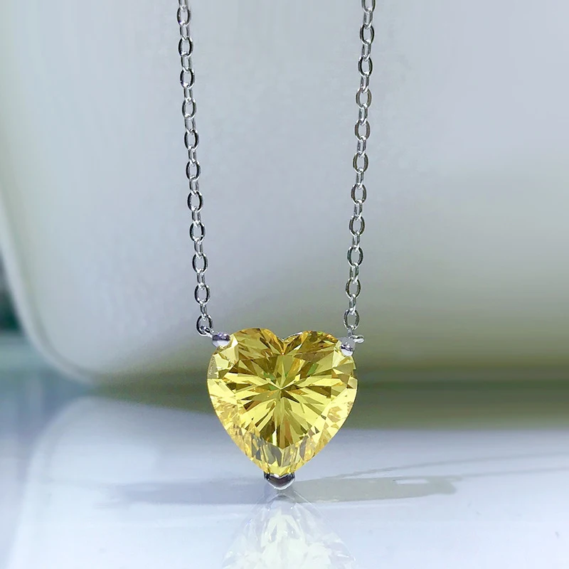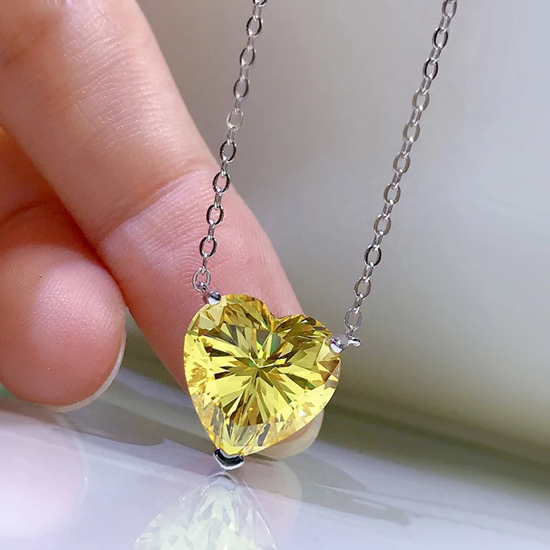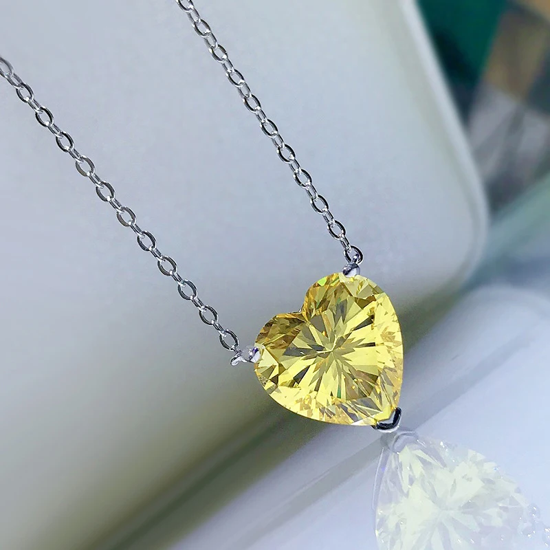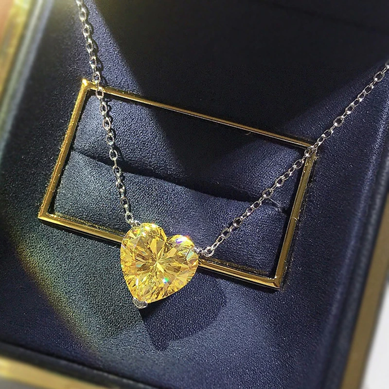 Knobspin 100% Стерлинговое Серебро 925 пробы Романтический цитрин 12*12 мм Сердце Создано Moissanite Свадебный кулон ожерелье женские ювелирные украшения