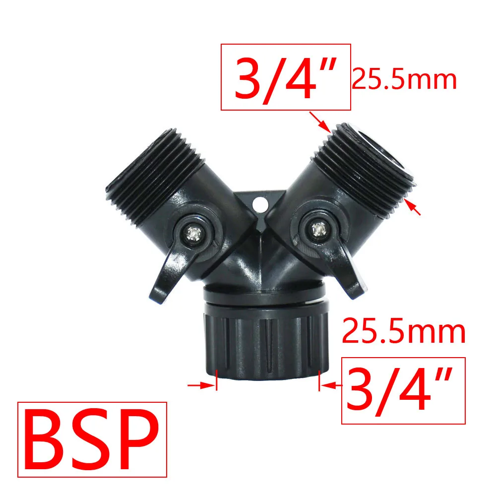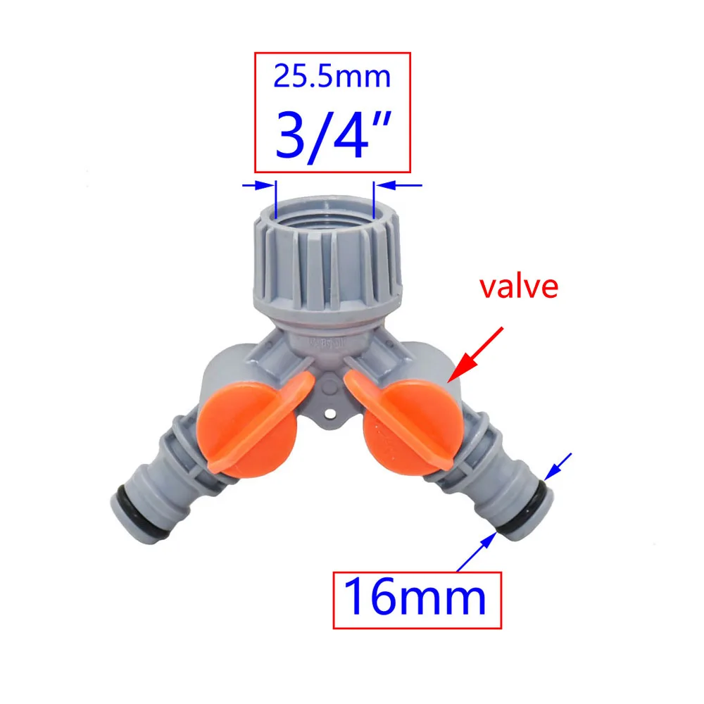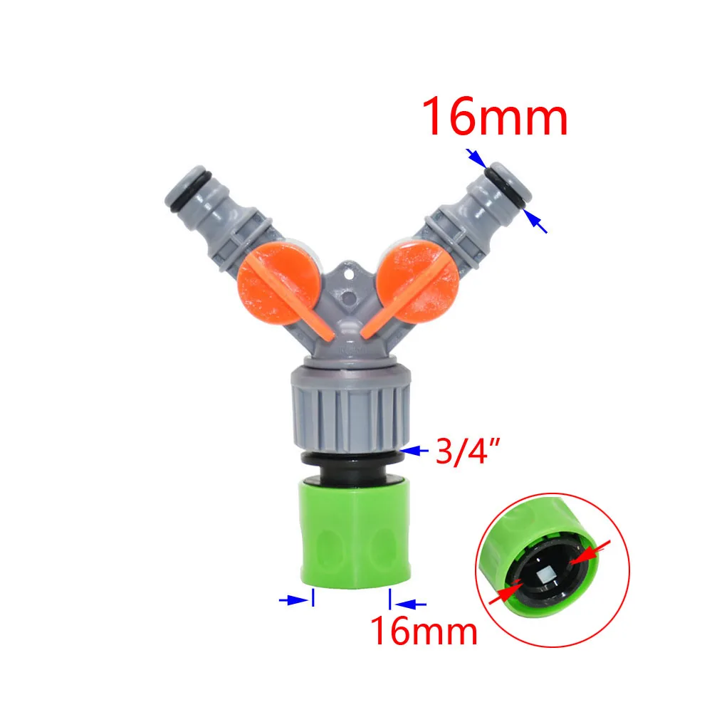 Разветвитель для садового шланга имеет 2 разъема и 2 клапана.