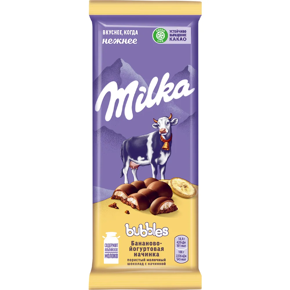 И банан, и йогурт, и пористый шоколад — трио, которое объединил производитель в одной плитке Milka Bubbles. Бренд использует высококачественные какао-бобы и альпийское молоко, которые входят в состав продукта помимо сахара и других ингредиентов. Легкий вкус сразу напомнит о беззаботной отпускной поре. К чаю или кофе, в подарок или для себя — плитка шоколада всегда уместна